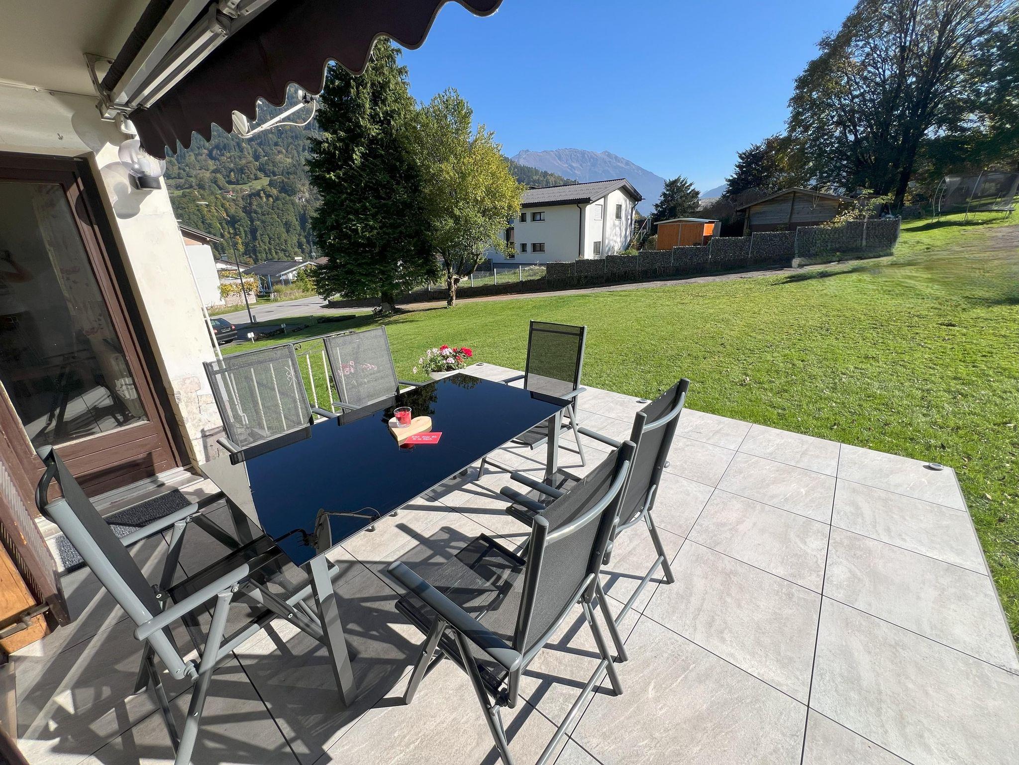 Genießen Sie den herrlichen Ausblick auf das Bergpanorama von der Terrasse aus.