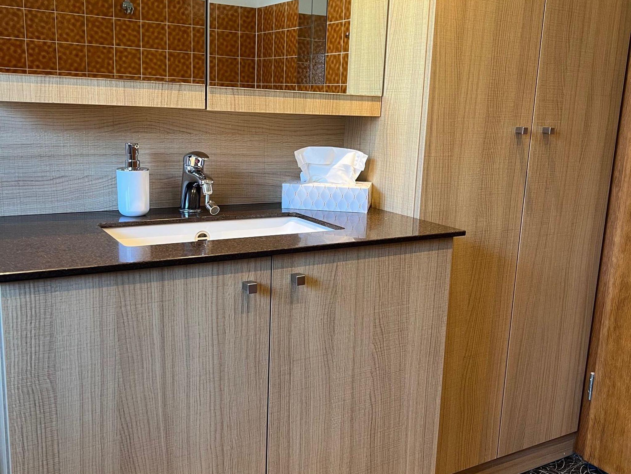 Die 60m² große Wohnung Ganeu befindet sich im Erdgeschoss. Sie besteht aus einer Wohnküche, zwei getrennte Schlafzimmern (Doppelbett), einem Badezimmer mit Dusche/Badewanne und WC, Flur sowie Abstellraum.