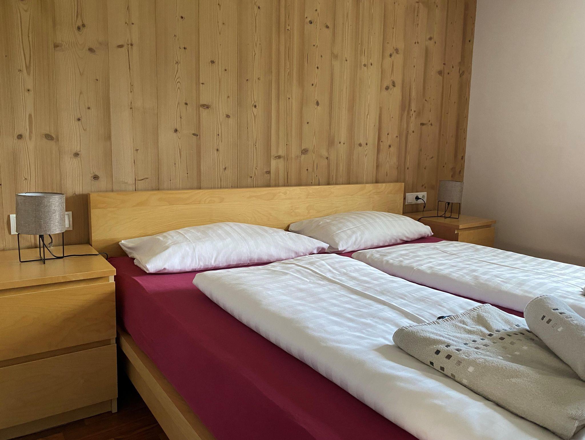 Wohnung Saula für 6 bis 8 Personen: 2 Doppelzimmer 1 Vierbett-Zimmer mit zwei Doppelbetten 1 Badezimmer mit Dusche, WC, Waschtisch und Föhn 1 Separates WC 1 komplett ausgestattete Wohnküche mit Balkon 1 Wohnzimmer mit großer Couch und TV