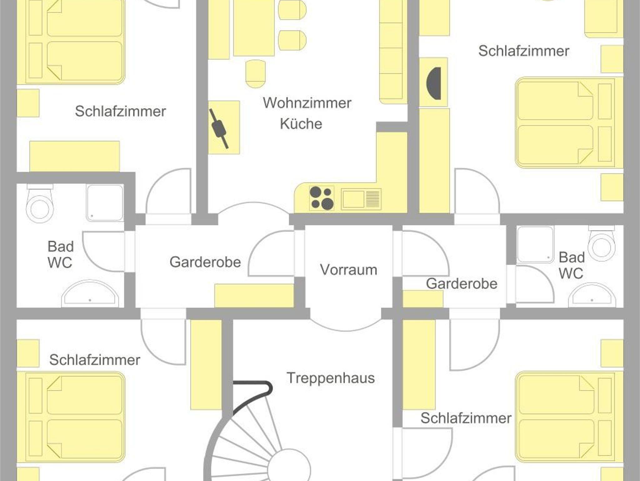 • Belegung 7-8 Personen: 4 DZ, 2xDU/WC