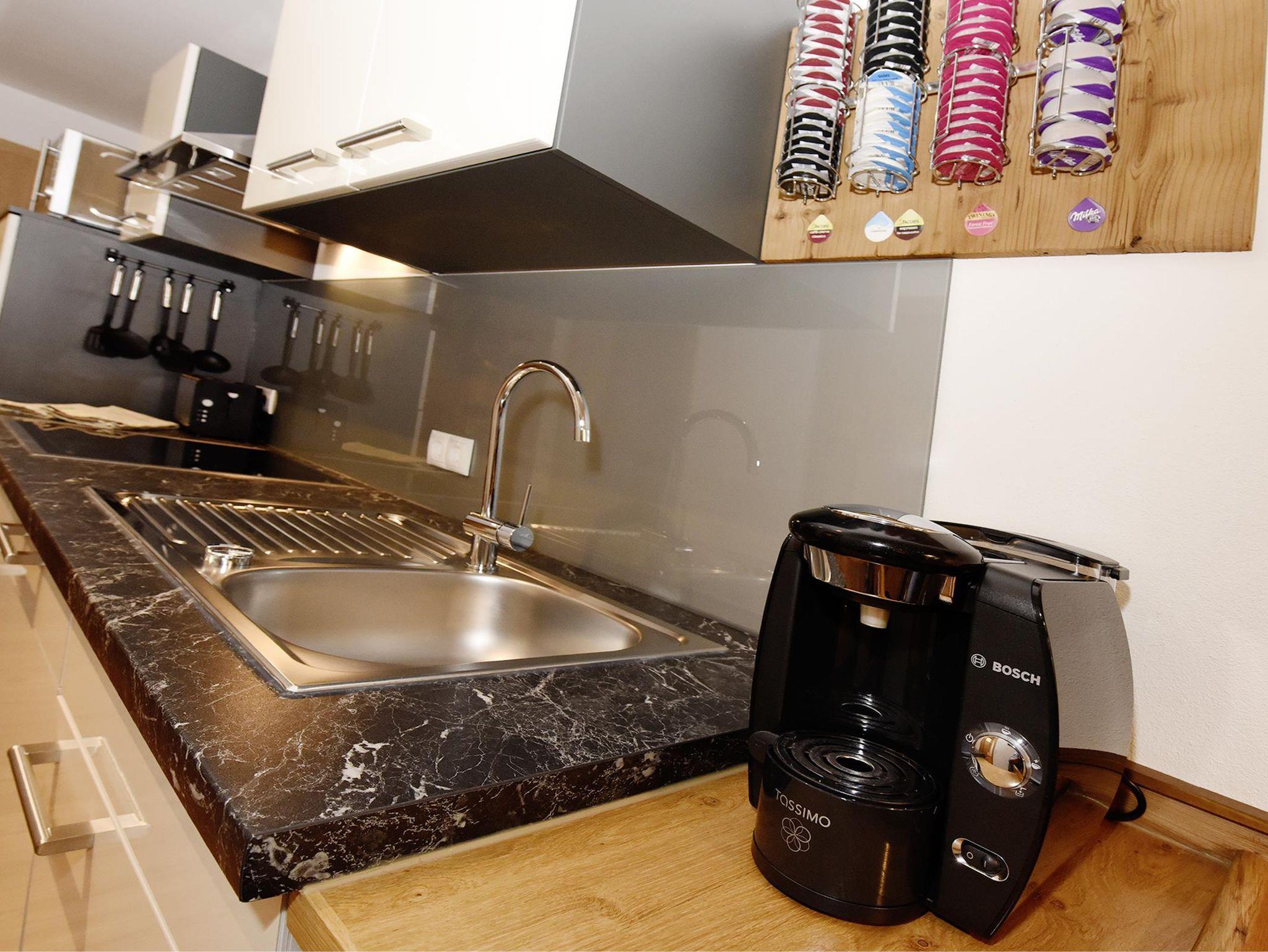 Top ausgestatteter Küchenblock: Spülmaschine, Kühlschrank inkl. Gefrierfach, Wasserkocher, Kaffemaschine, Grillmikrowelle