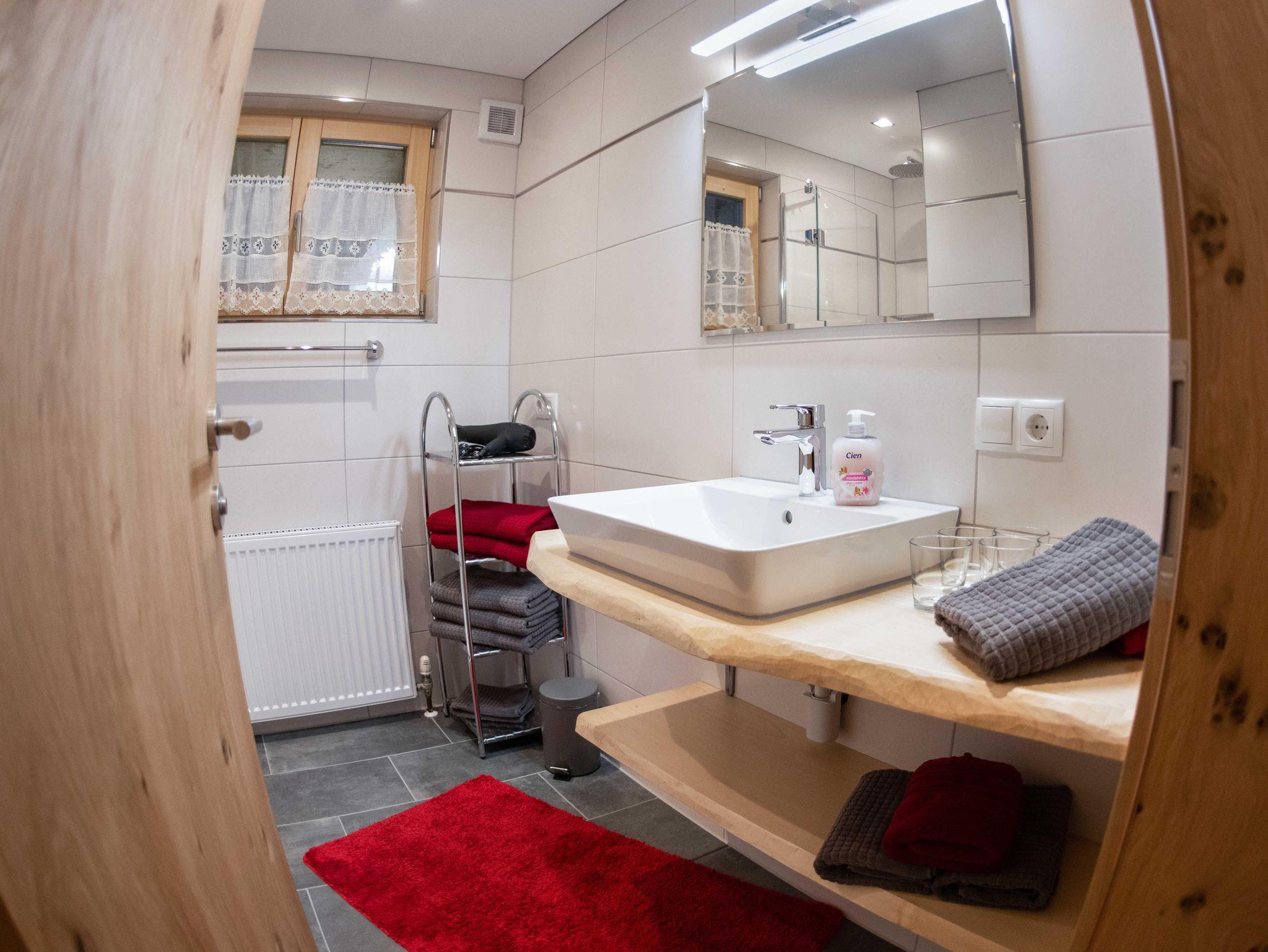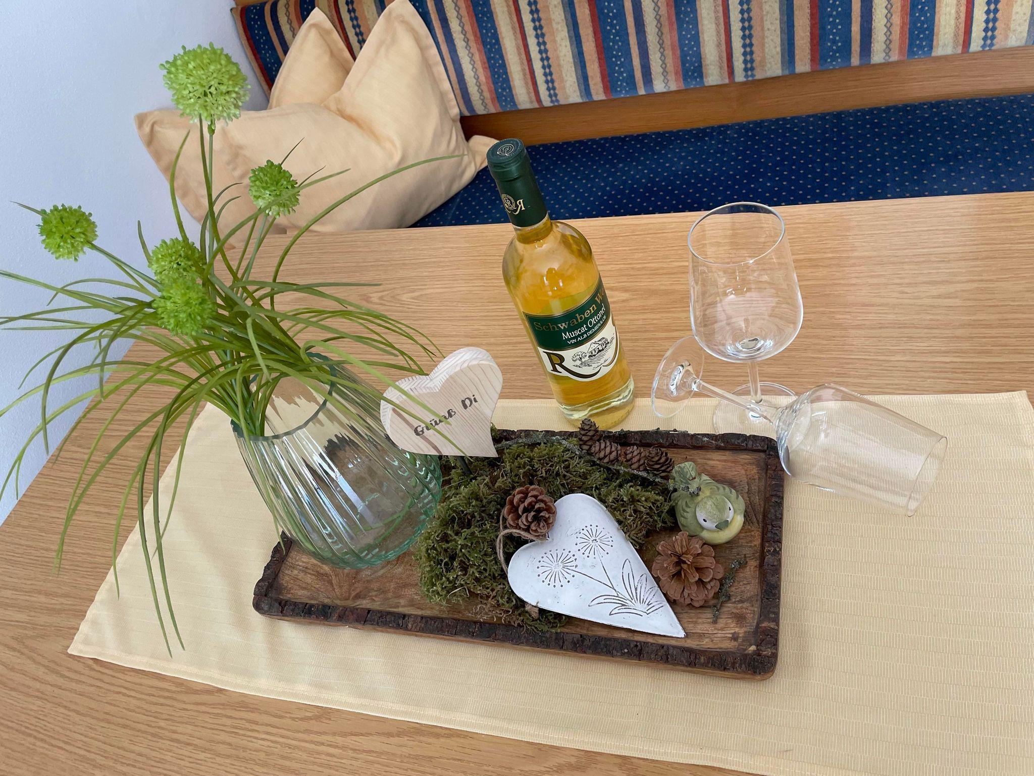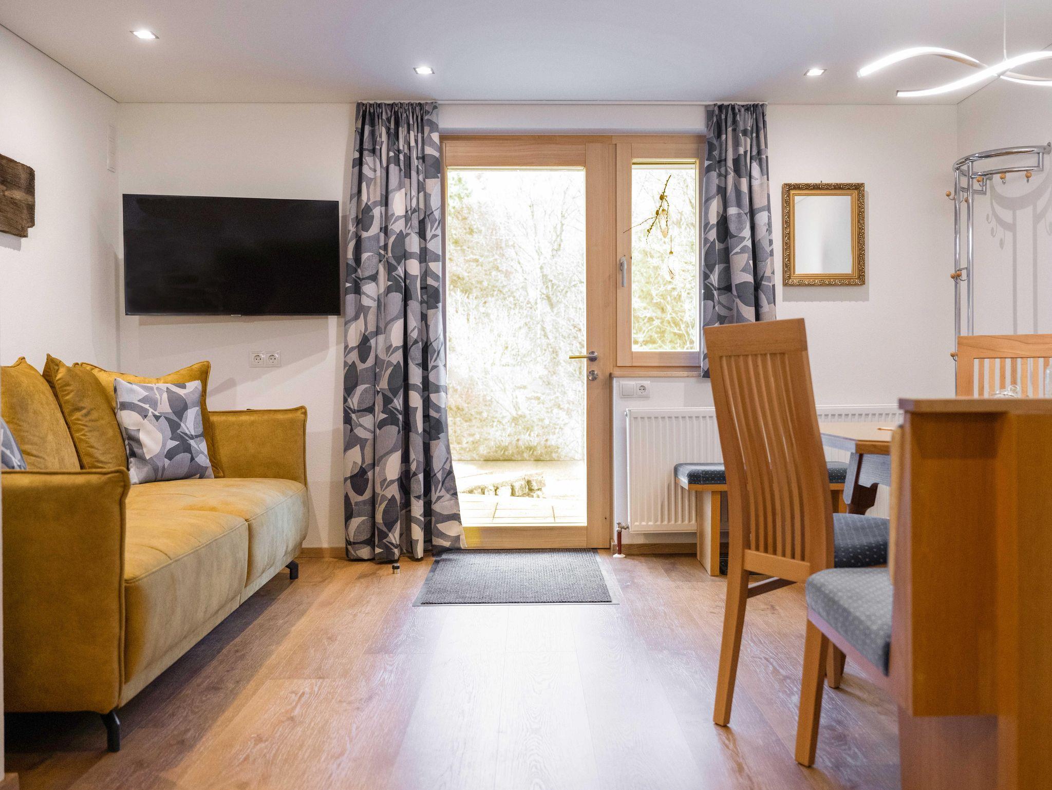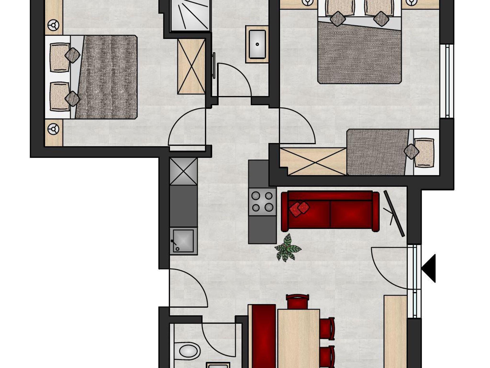 Die Ferienwohnung verfügt über eine Couch, eine Wohnküche mit Sitzecke, Geschirrspüler, Backrohr, Kühlschrank mit Gefrierfach, Kaffeemaschine mit Tabs, Wasserkocher und Toaster. Zwei Schlafzimmer mit einem Doppel- und einem Dreibettzimmer, ein Badezimmer mit Dusche und Seperates WC.