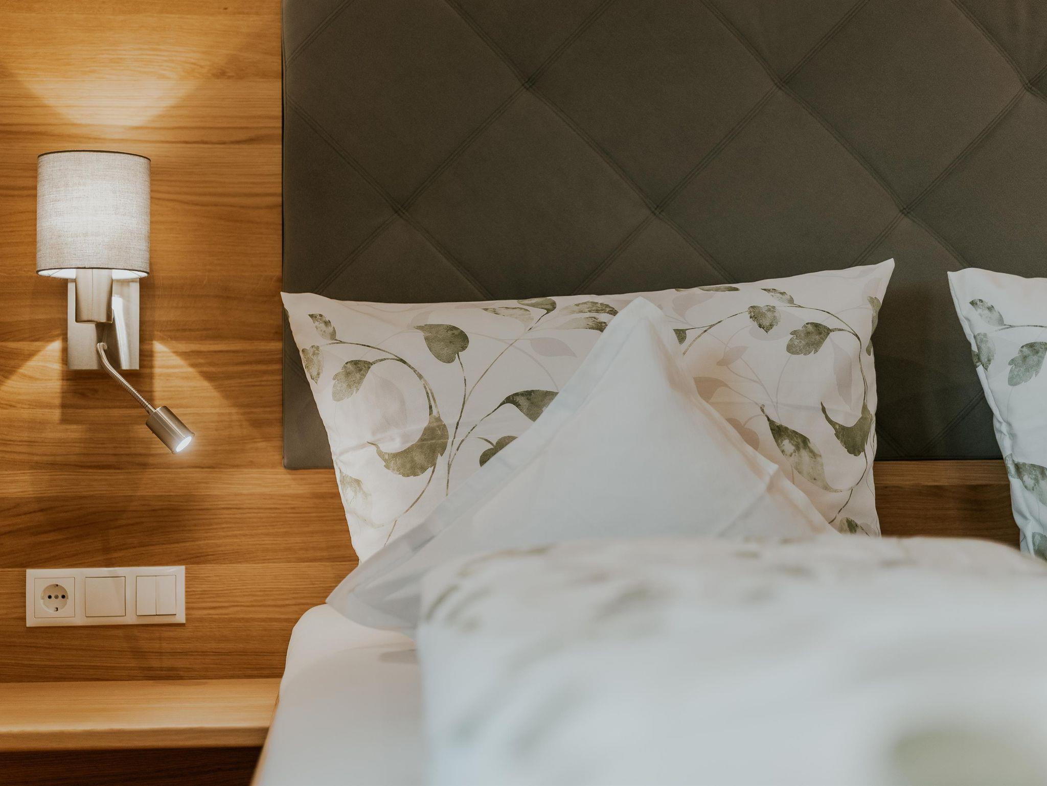 1 Doppelzimmer mit Du/WC, Balkon und Kabel-TV, 1 Doppelzimmer mit TV und Balkon, 1 Zweibettzimmer mit Dachschräge, zusätzliches 2. Badezimmer (DU/WC, Haarfön), Wohnküche (TV, E-Herd mit Backrohr, Kühlschrank, Kaffeemaschine, Geschirrspüler, Mikrowelle), Vorraum mit Lese- und Spielecke für Kinder, Sitzplatz im Garten, Babystuhl + Kinderbett auf Anfrage.