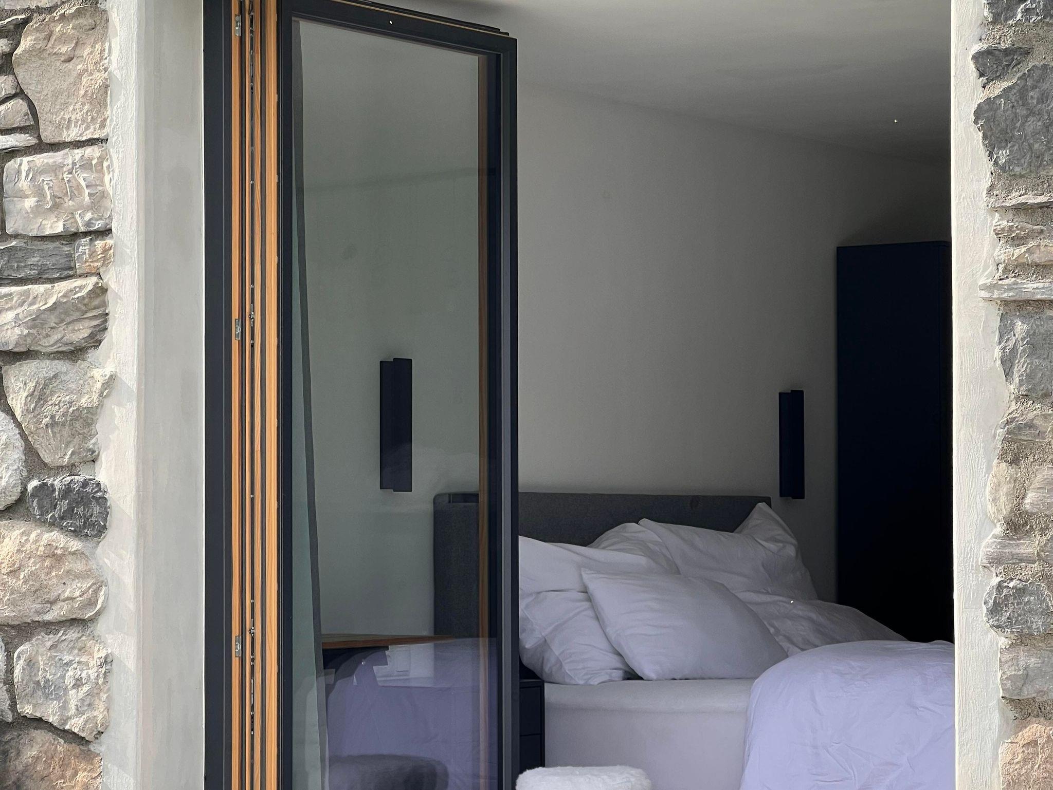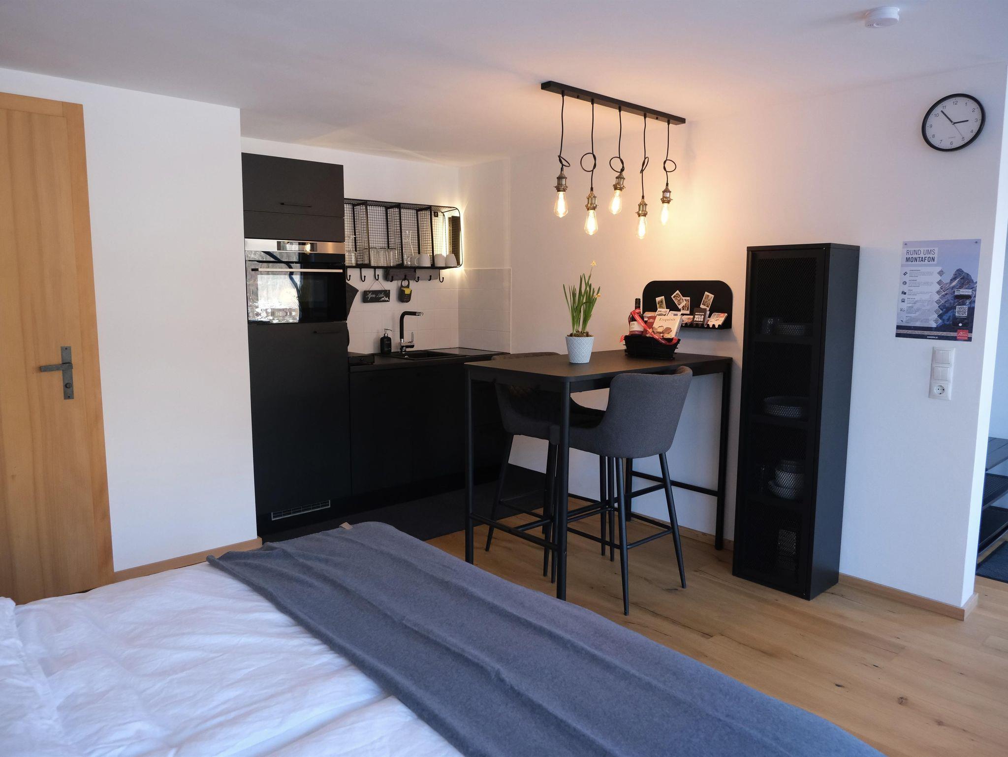 Modernes 30m² Neubau-Apartment, mit Panoramablick direkt vom Bett aus. Ausstattung: Vollküche (Induktion, Backofen, Spülmaschine, Gefrierfach), eigenes Bad mit Dusche & Waschmaschine. Highlight: Eigene sonnige Panoramaterrasse für Frühstück und Entspannung. Bewusst TV-frei für echte Erholung (Digital Detox), WLAN vorhanden. Ausgeführt als eigenständige Wohneinheit.