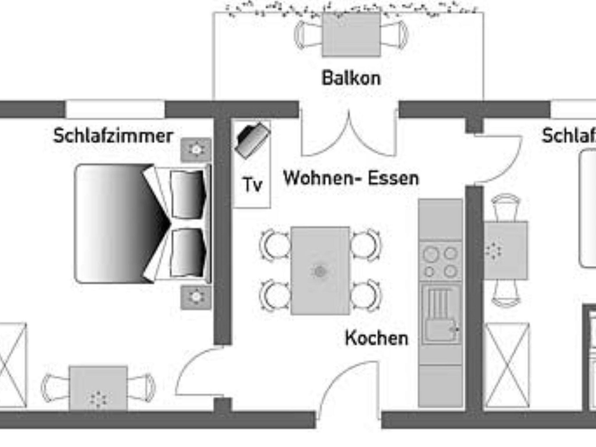 "Kornblume", 3-room apartment 50 m2, on the upper ground floor. Bright, cosy furnishings: 2 double bedrooms, each room with shower/WC and satellite TV (flat screen). Kitchen-/living room (oven, dishwasher, 4 ceramic glass hob hotplates, toaster, kettle, electric coffee machine) with dining table. Parquet floors. Small balcony. Balcony furniture. Facilities: Internet (WiFi, free). Please note: non-smokers only.