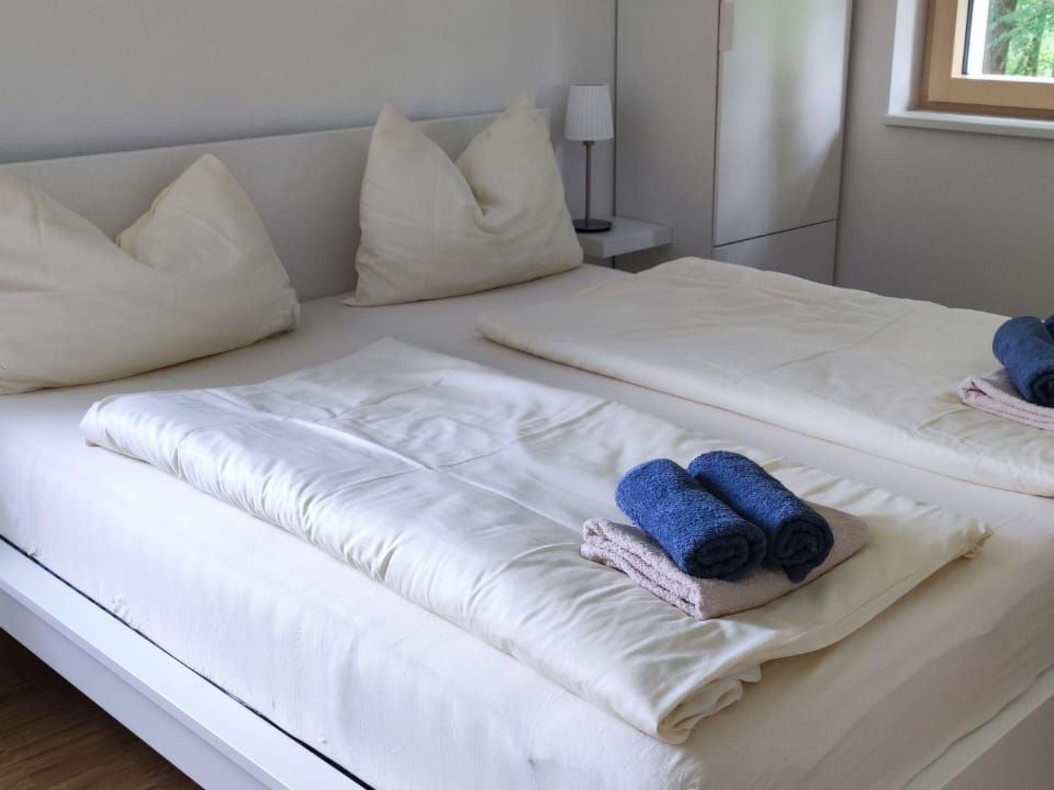 Haus Sonneninsel is situated in the middle of a spacious 1,300 m2 garden and woodland property, ideal for relaxing or for a family holiday. Velden and Lake Wörthersee are approx. 3km away. The house with 150m2 of usable space was completely renovated and modernised in 2020. 4 bedrooms, an inviting living room (50m2) with a large kitchen, two sun terraces and the garden offer space for up to 10 people. The rooms are divided into a large and a small living unit, which can be used together.