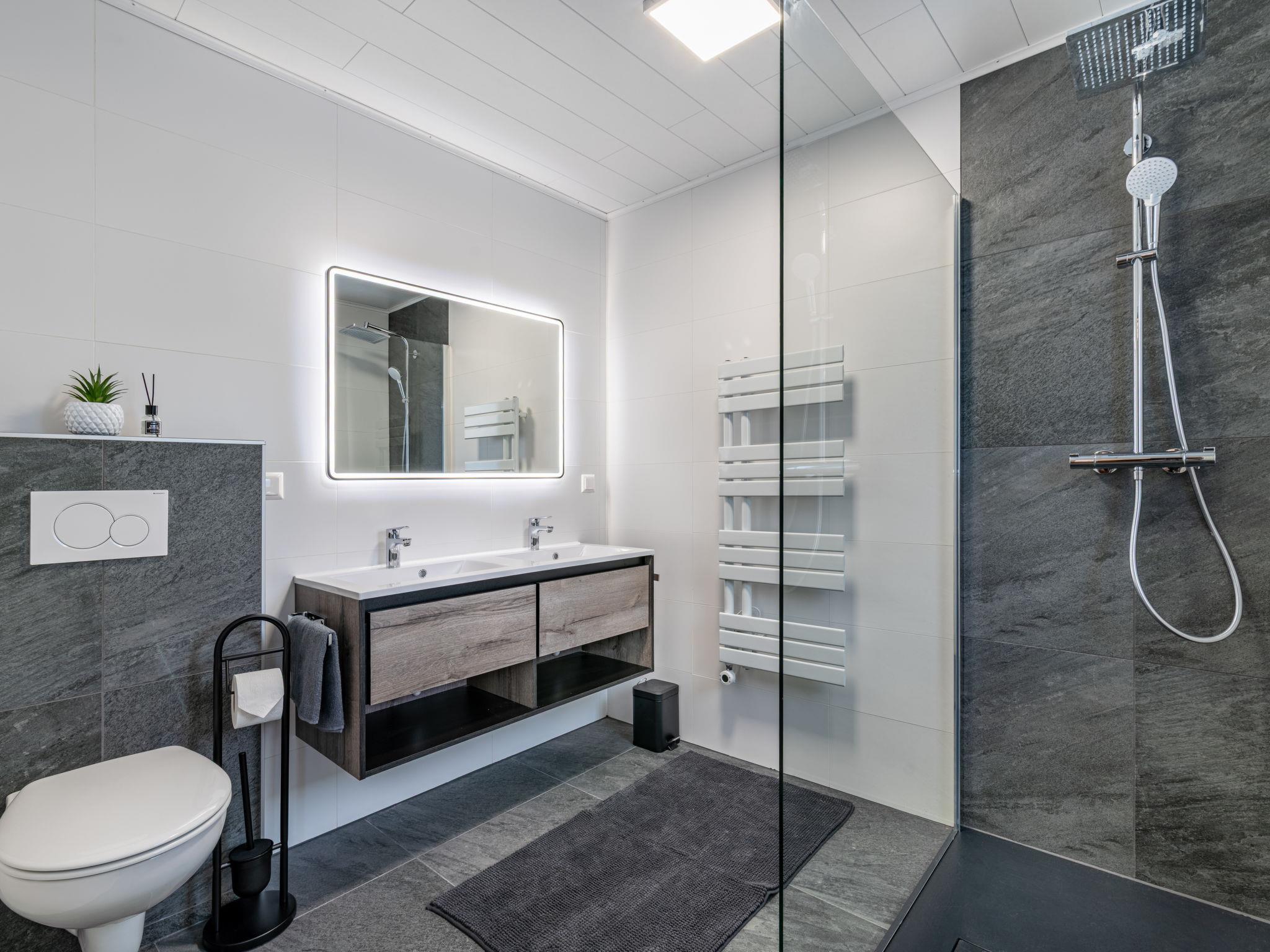 4-room apartment 107 m2 on 1st floor. Fully renovated in 2017: living/dining room with satellite TV (flat screen), radio. Exit to the terrace. 2 double bedrooms, each room with hand-basin. Exit to the balcony. 1 room with 3 beds. Open kitchen (4 hot plates, oven, dishwasher, microwave). Bath/WC, sep. WC. Balcony, large terrace 30 m2. Terrace furniture. Facilities: Internet (WiFi, free). Please note: maximum 1 pet/ dog allowed. Smoke alarm. The apartment has a separate entrance. Partially sloping ceilings.