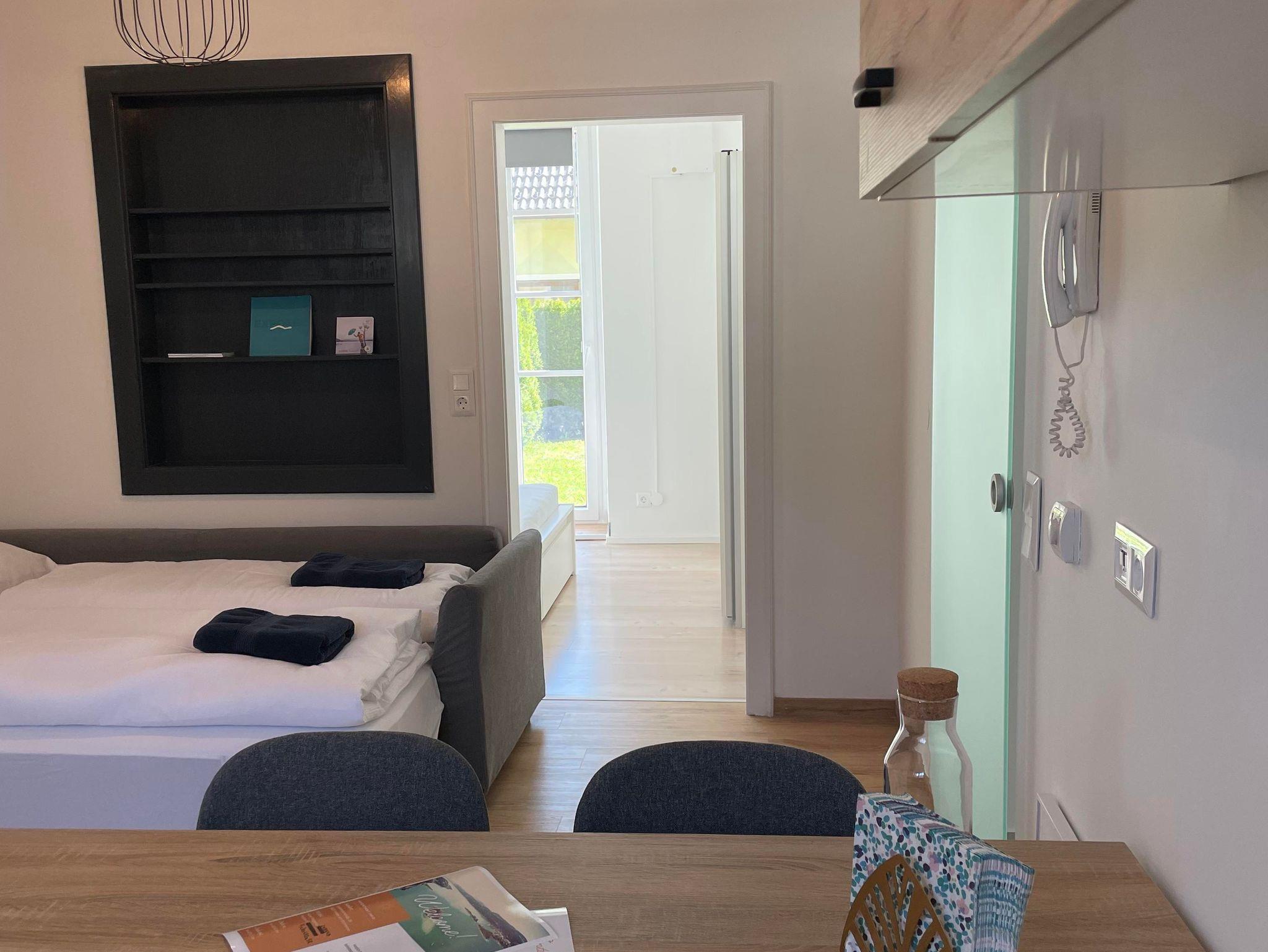 Willkommen in der Rosenvilla Velden Top 2, deinem perfekten Rückzugsort für bis zu 4 Personen. Das 35 m² große Apartment im Erdgeschoss verfügt über ein gemütliches Wohnzimmer mit ausziehbarer Couch und einer voll ausgestatteten Küche. Vom Wohnzimmer aus gelangst du direkt in den Garten mit Sitzgelegenheiten für 4 Personen. Das barrierefreie Badezimmer bietet eine Dusche und ein WC, während das Schlafzimmer ein komfortables Doppelbett bereithält.