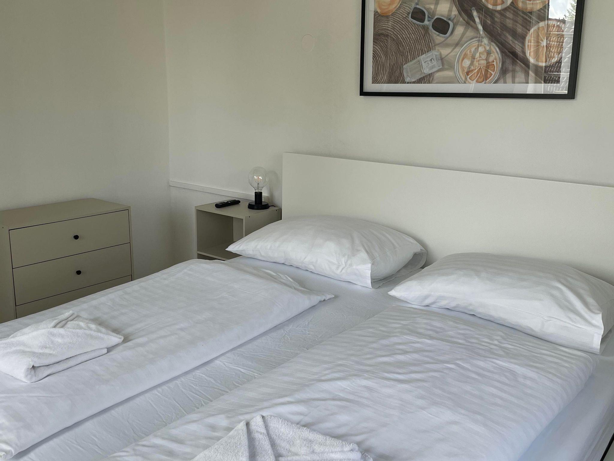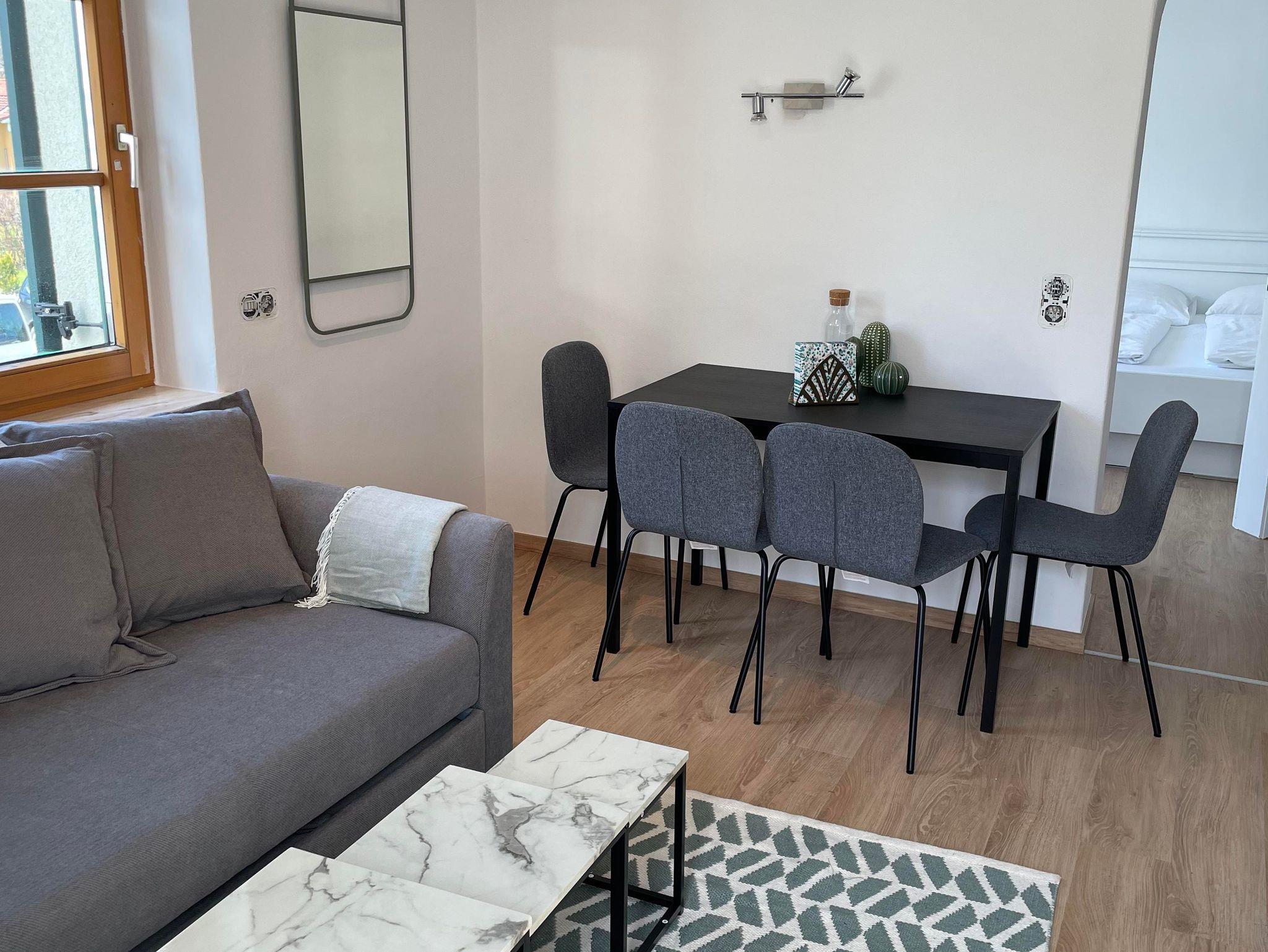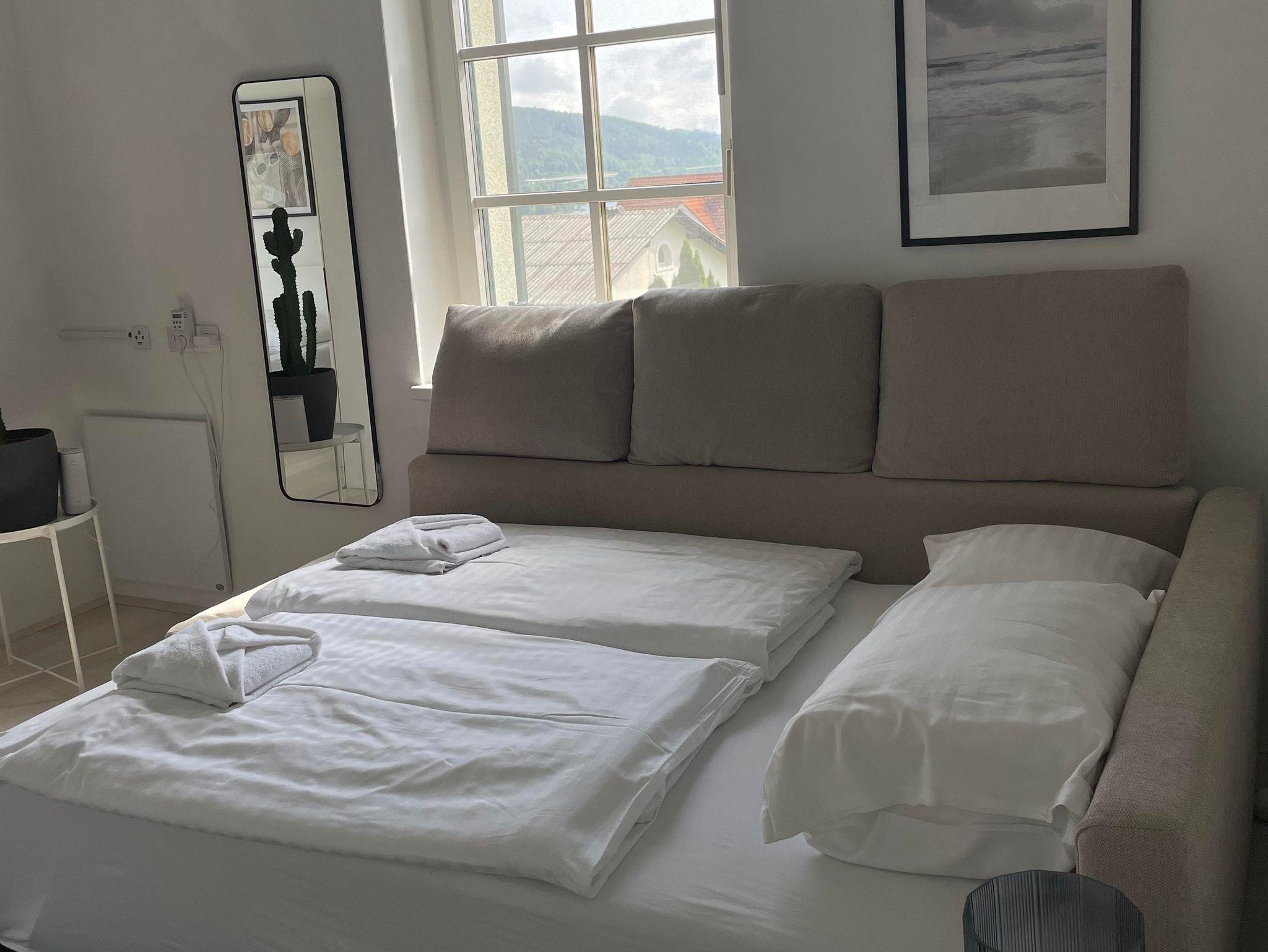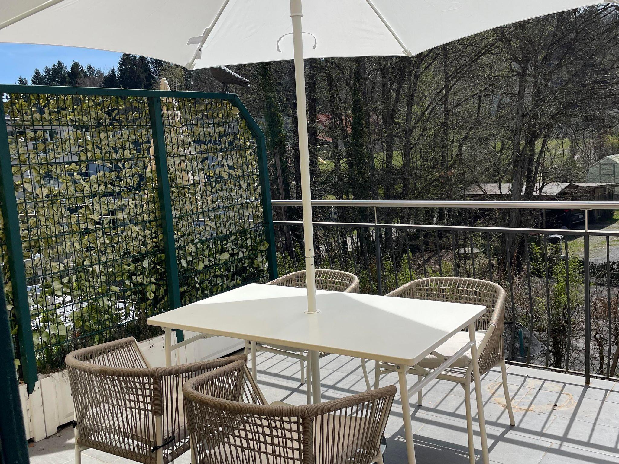 Willkommen in der Rosenvilla Velden Top 4, deinem perfekten Rückzugsort für bis zu 4 Personen. Das Apartment im ersten Stock bietet ein gemütliches Wohnzimmer mit ausziehbarer Couch und einer voll ausgestatteten Küche. Von der Küche aus gelangst du direkt auf den Balkon, der Sitzgelegenheiten für 4 Personen bietet. Das Badezimmer verfügt über eine Dusche und ein separates WC. Das Schlafzimmer ist mit einem komfortablen Doppelbett und einem TV ausgestattet.