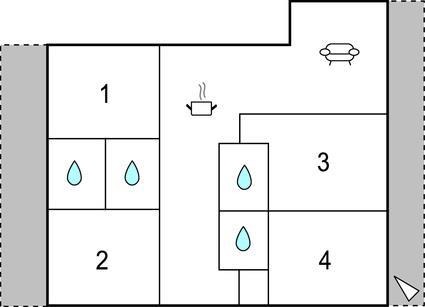 Soveværelse (nr. 1) - 1 Soveplads. (Enkeltseng(e)). 2 Sovepladser. (Dobbeltseng(e)).