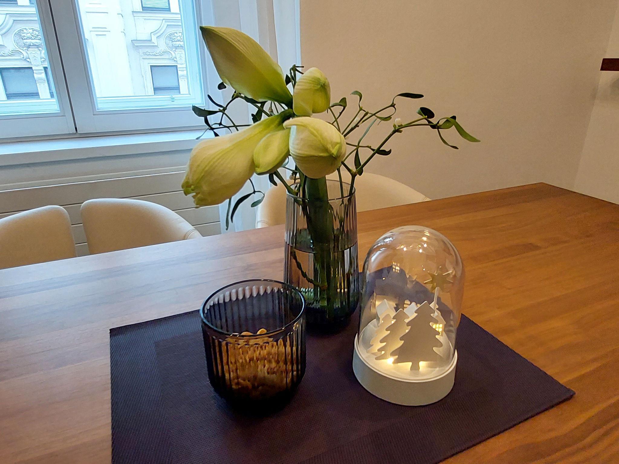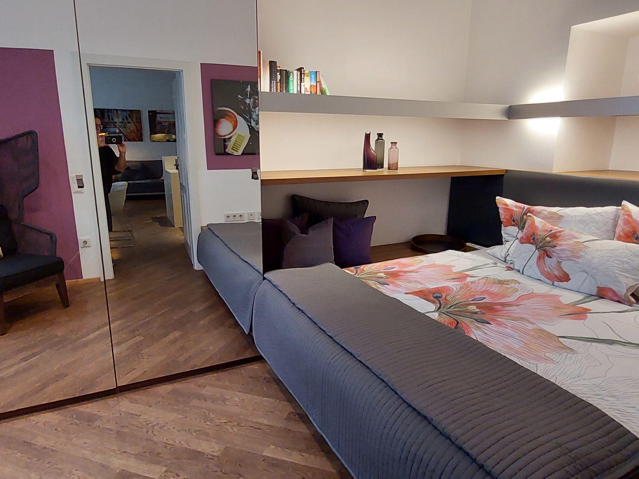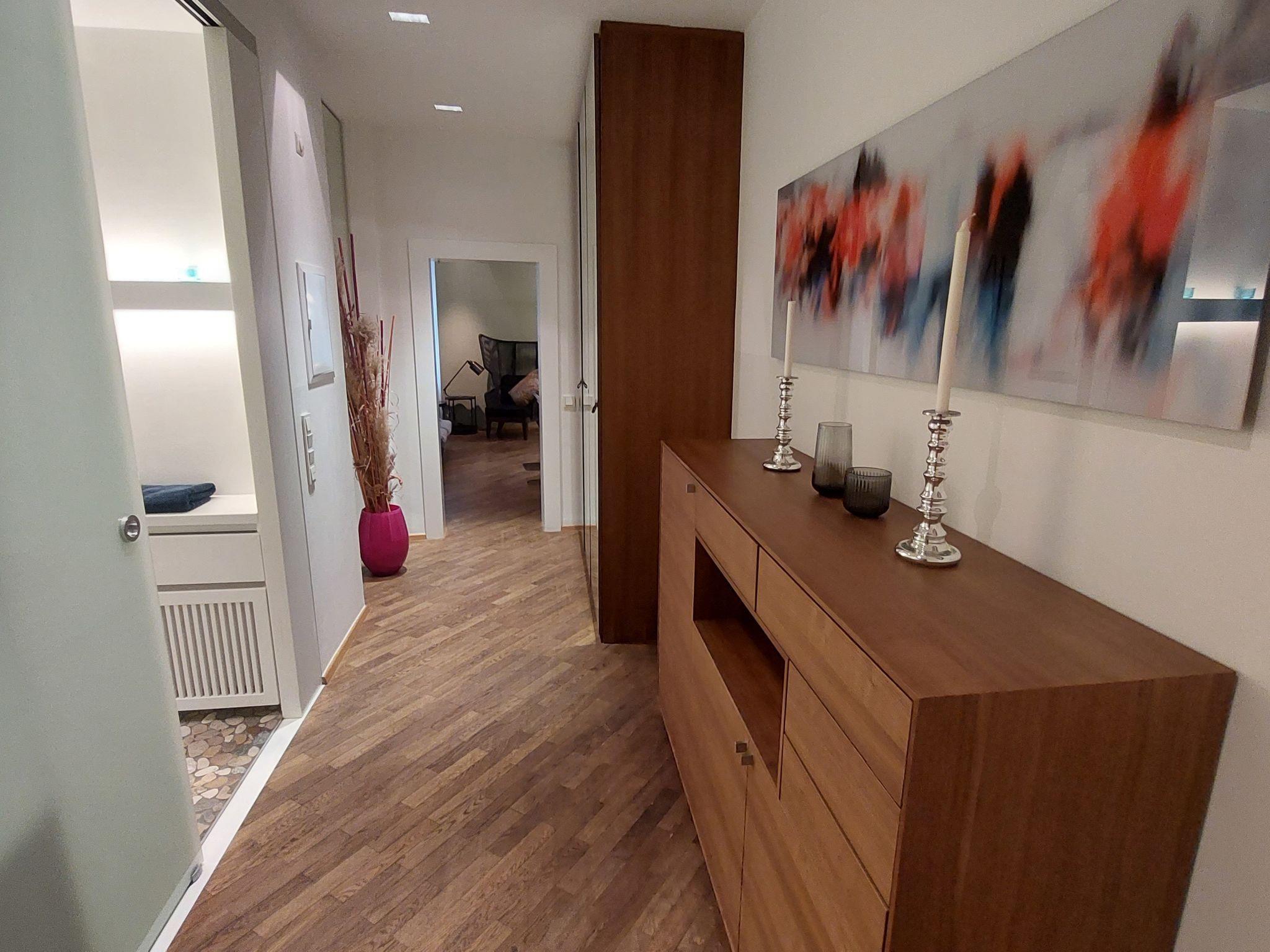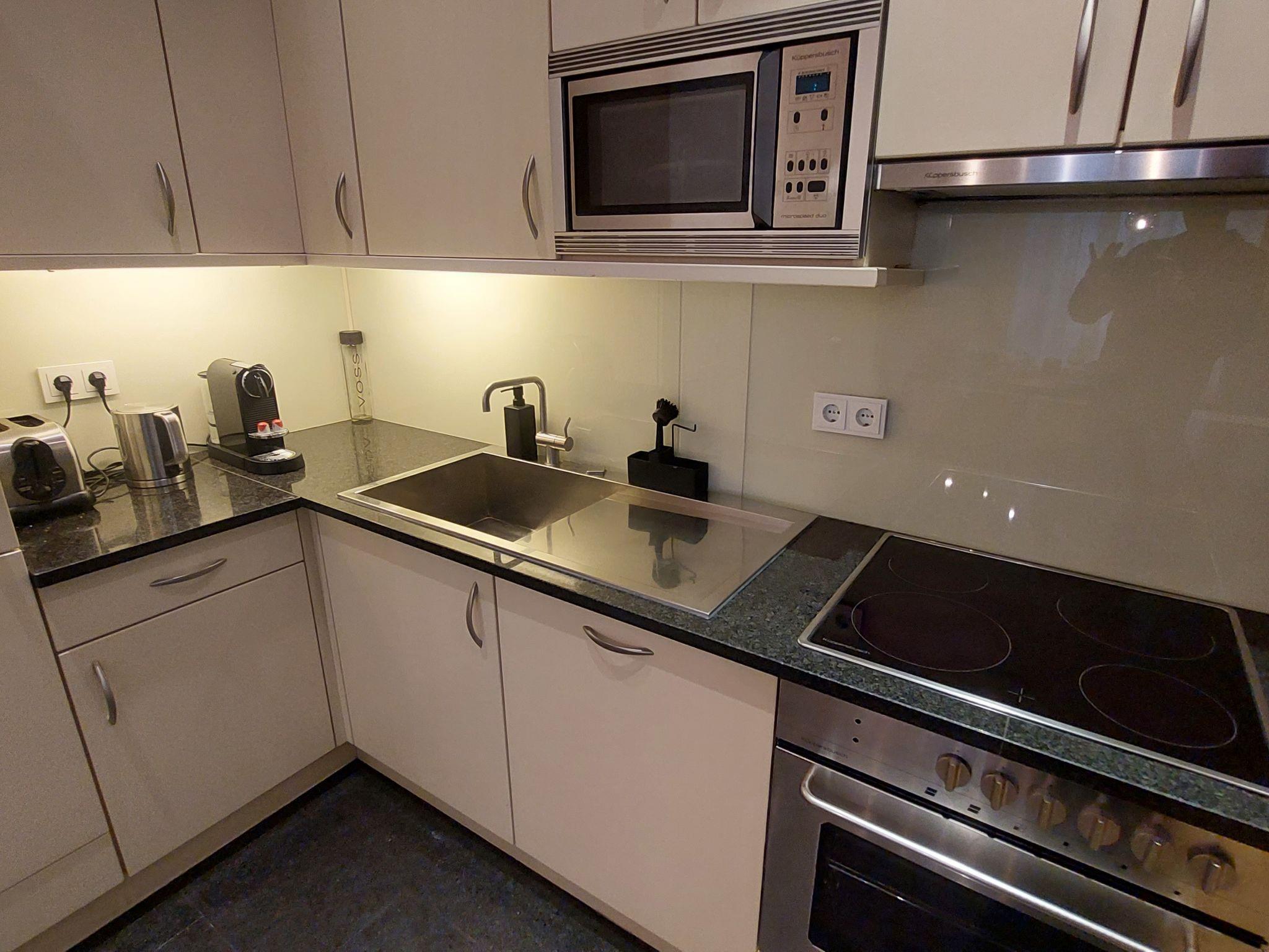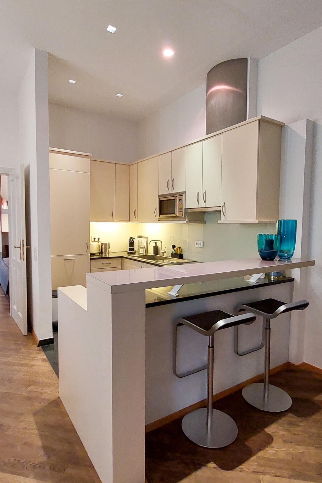 2-room apartment 70 m2 on 3rd floor. Very modern and stylish furnishings: entrance hall. Living/dining room with 1 pull-out bed (2 pers. 2 x 80 cm, length 200 cm), dining table and flat screen. 1 double bedroom with fan. Open kitchen (oven, dishwasher, 4 ceramic glass hob hotplates, toaster, kettle, microwave, freezer, electric coffee machine, Capsules for coffee machine (Nespresso)) with small bar. Shower/WC. Parquet floors. Facilities: washing machine, iron, hair dryer. Internet (WiFi, free). Please note: non-smokers only. Check-in: 4:00 p.m. to 8:00 p.m. (later arrival is possible for an additional fee). Check out: until 10.00 a.m.