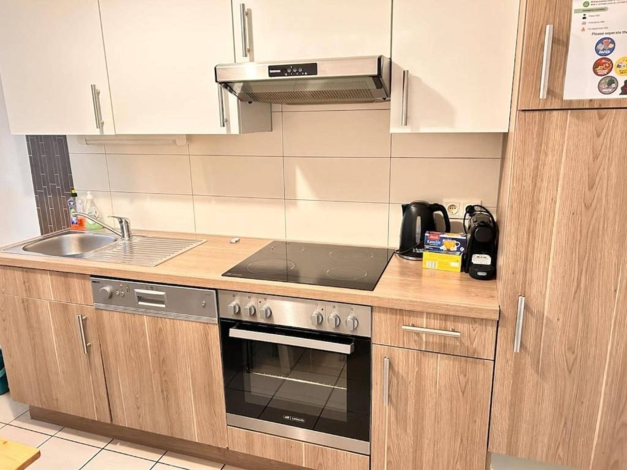 The flat offers a large fully equipped kitchen, workplace, washing machine, large beds, TV and seating area with dining table. Perfect for a comfortable stay in Vienna.
