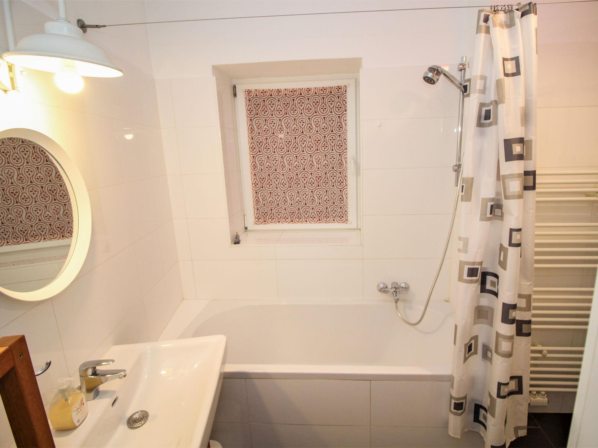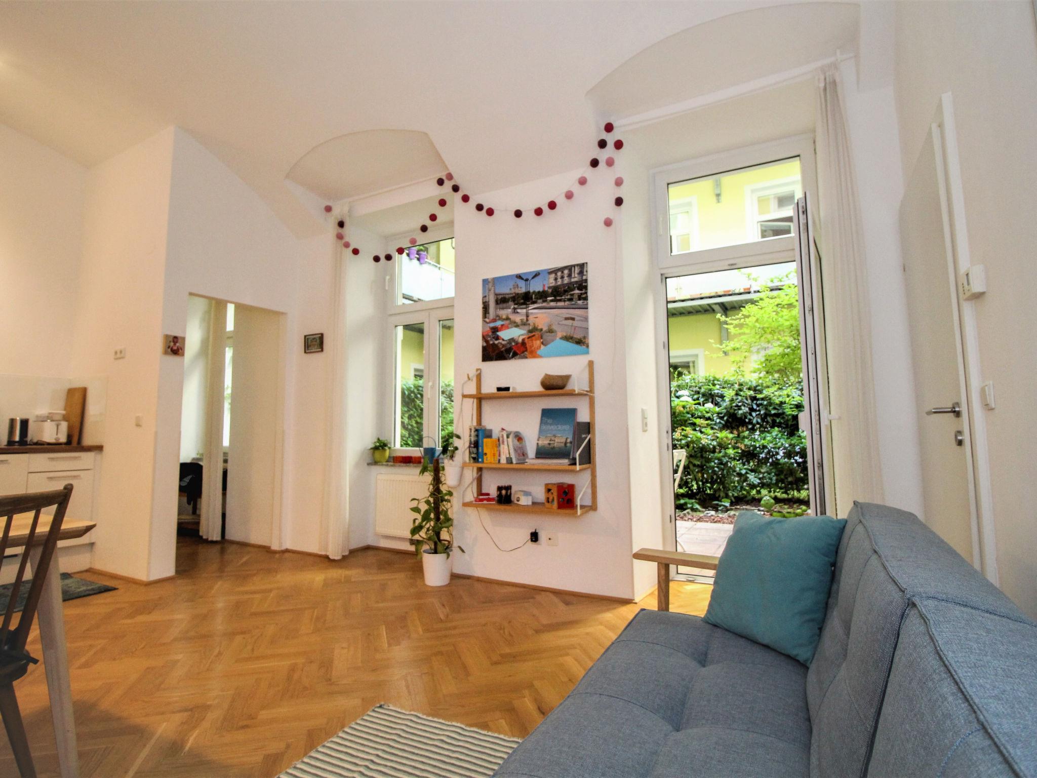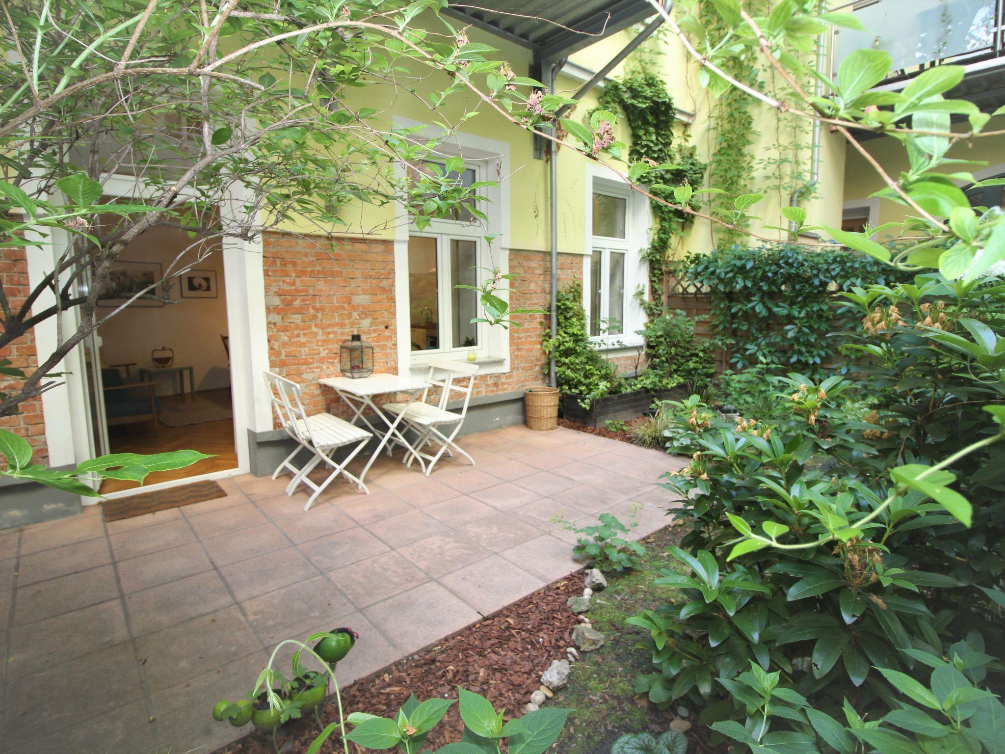 "City Oase Garden", 2-room apartment 43 m2, on the ground floor. Spacious, fully renovated in 2017, practical and modern furnishings: open entrance hall. 1 room with 1 double bed. Open large living/sleeping room with 1 double sofabed (120 cm, length 200 cm), dining table. Exit to the garden, to the terrace. Kitchen-/living room (oven, dishwasher, 4 ceramic glass hob hotplates, toaster, kettle, electric coffee machine). Bathroom, sep. WC. Parquet floors. Terrace, garden 50 m2. Terrace furniture. Facilities: washing machine, hair dryer. Internet (WiFi, free). Please note: suitable for families apartment courtyard side. Non-smokers only.