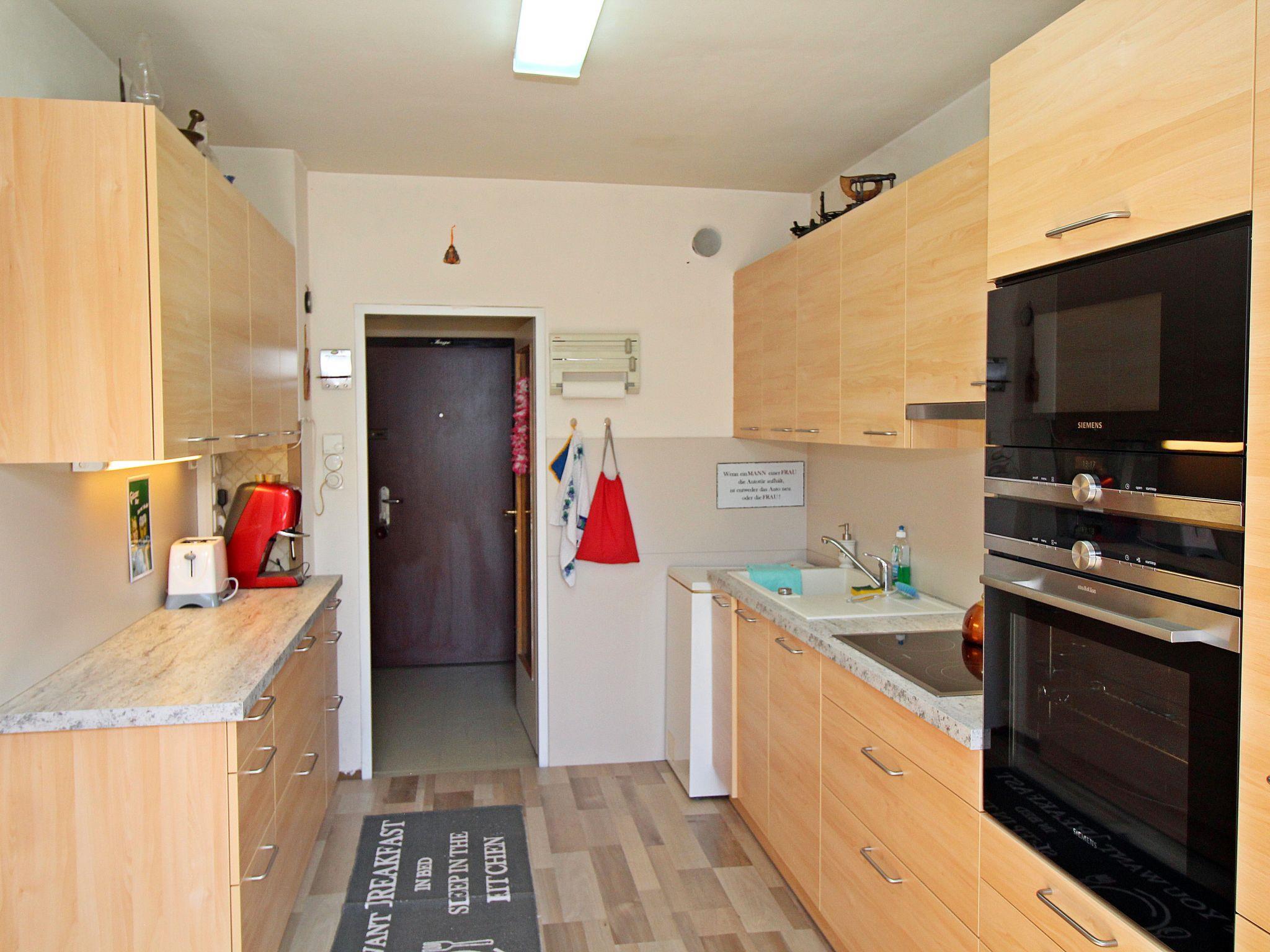 "Vienna waits for you", 3-room apartment 65 m2, on the top floor. Spacious and bright, rustic furnishings: entrance hall. Living/dining room with dining table and satellite TV (flat screen), hi-fi system. Exit to the terrace. 1 double bedroom, window onto the courtyard with satellite TV (flat screen), fan. 1 small double bedroom with 1 french bed (140 cm, length 200 cm). Large, open kitchen (oven, dishwasher, 4 ceramic glass hob hotplates, microwave, freezer, electric coffee machine, Capsules for coffee machine (Cafissimo) extra). Bathroom, sep. WC. Wooden floors. Small terrace 8 m2, south-west facing position. Side view of the city. Facilities: iron, hair dryer. Internet (WiFi, free). Please note: suitable for families. Non-smokers only.