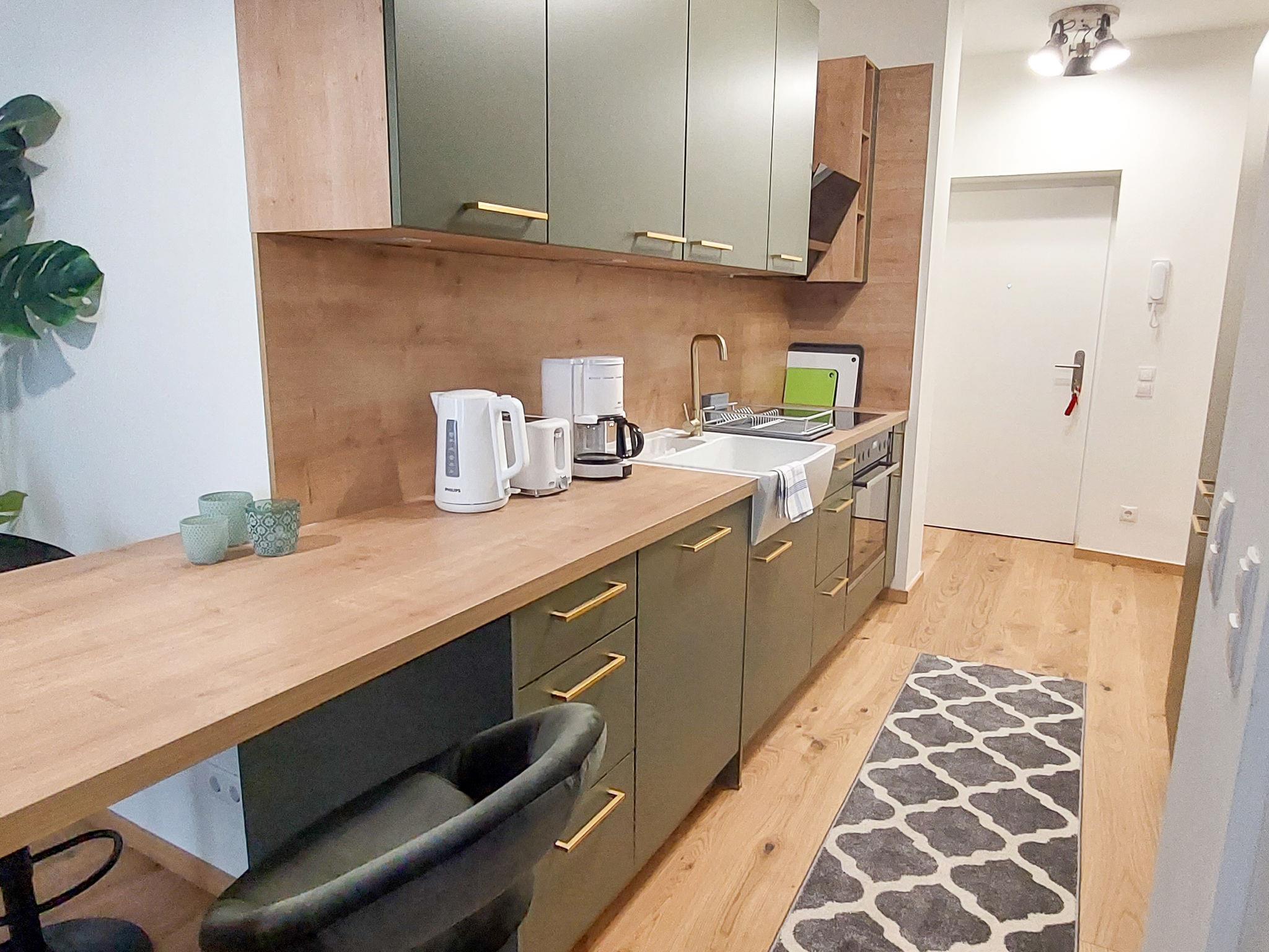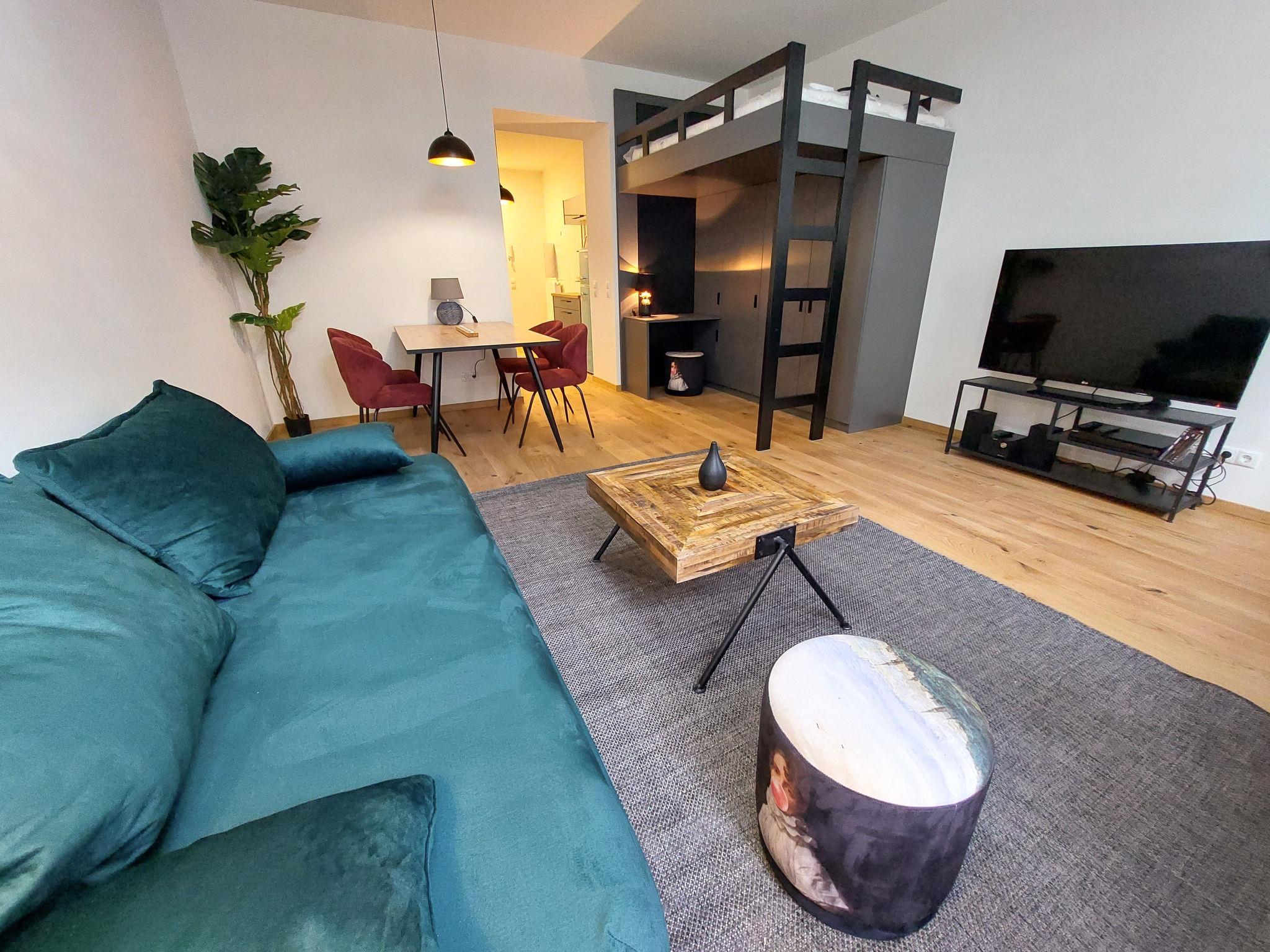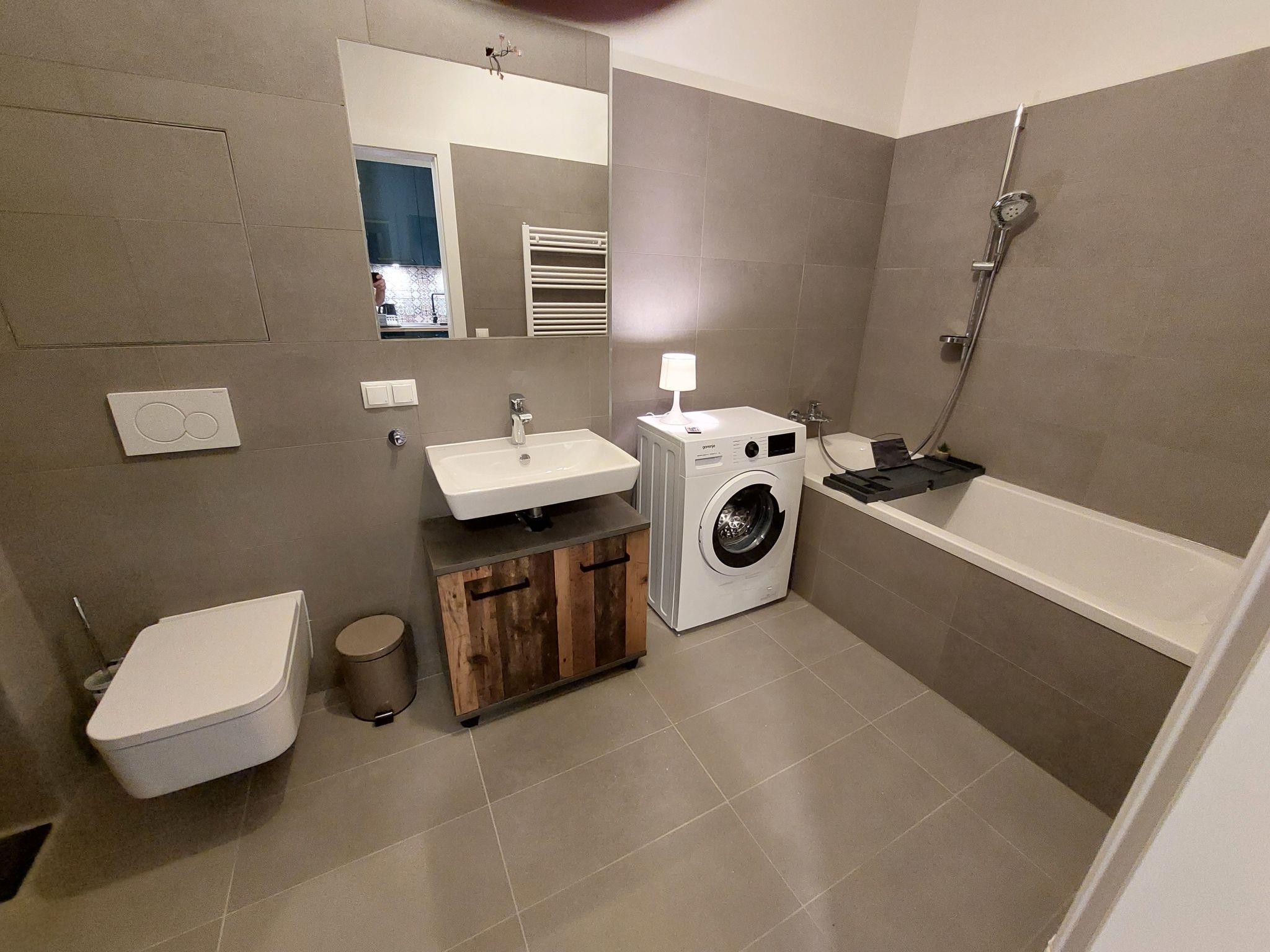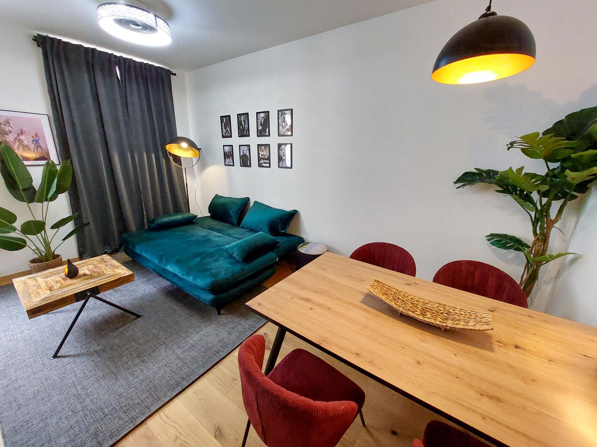 "Premium Apartment Maria Hilf 1+2 Double", 2-room apartment 84 m2 on 2nd floor. Object suitable for 8 adults. Spacious and bright, fully renovated in 2023, very modern and tasteful furnishings: entrance hall. Open living/sleeping room with 1 x 1 bunk beds (180 cm, length 190 cm), 1 pull-out bed (2 pers.), cable TV and international TV channels (flat screen), radio, CD-player and DVD. Open living/sleeping room with 1 x 1 bunk beds (150 cm, length 200 cm), 1 pull-out bed (2 pers.), cable TV (flat screen), radio, CD-player and fan. Open kitchen in the entrance (8 hot plates, dishwasher, toaster, kettle, electric coffee machine). 2 Baths/showers/WC. Heating. Wooden floors. Facilities: washing machine, iron, baby cot, hair dryer. Internet (WiFi, free). Please note: suitable for families apartment street side. Non-smokers only. Attention: these are 2 separate apartments for 4 people each, located next to each other. Highspeed-Internet.