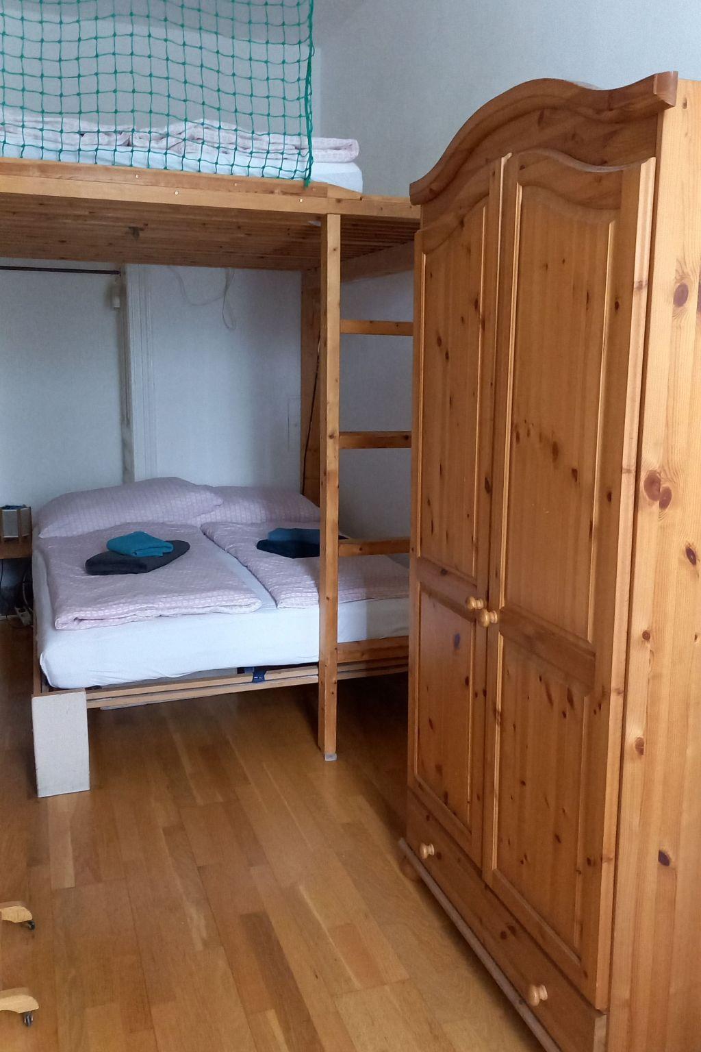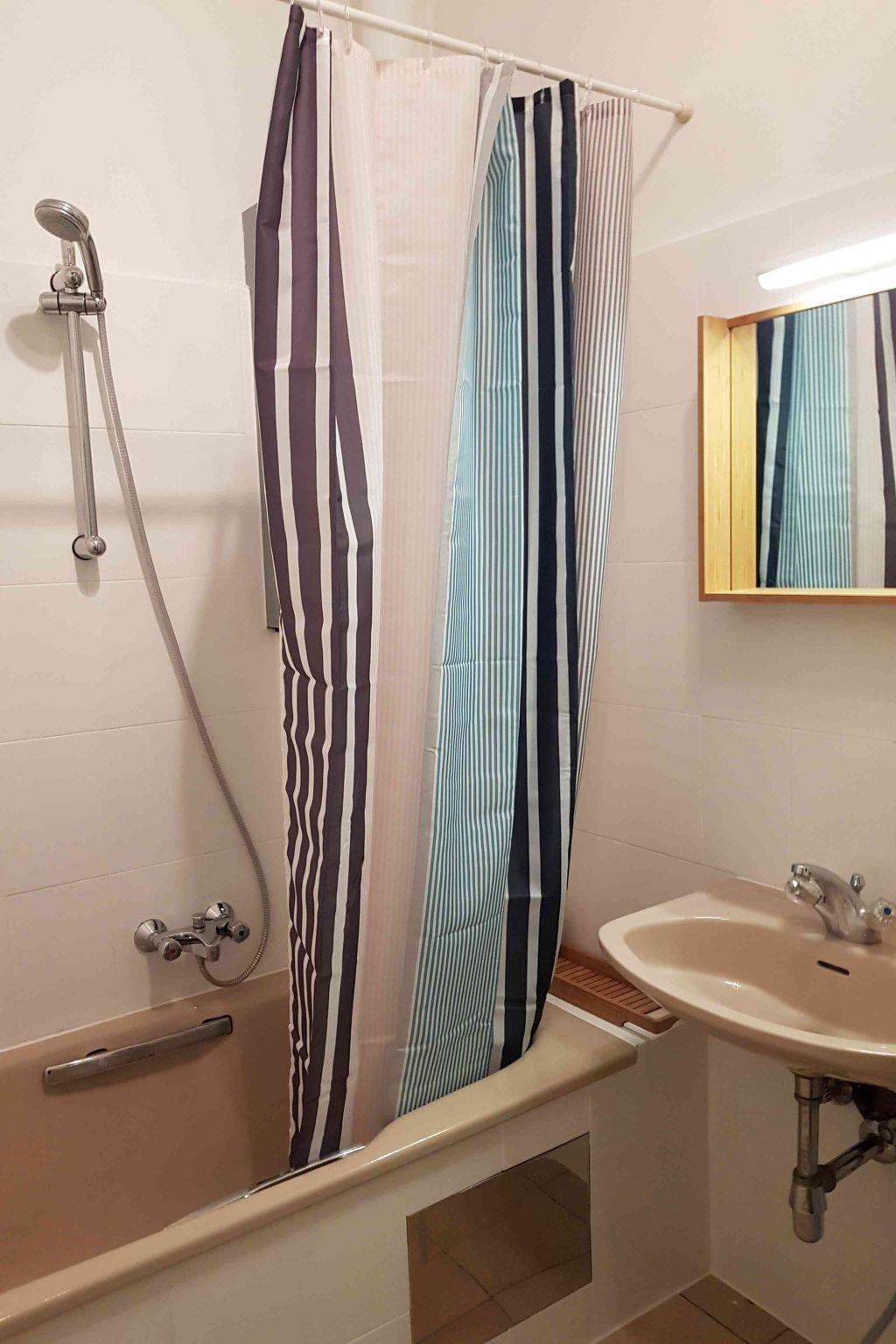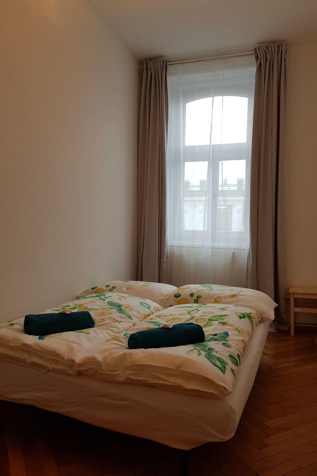 The accommodation has a fully equipped kitchen, 4 bedrooms, one of which has a bunk bed and a view of the quiet inner courtyard. The living room has a dining table and a couch that can also serve as a sofa bed for two people. As is customary in the old Viennese town houses, there is a bathroom with washbasin and bathtub. The WC is located in a separate room.