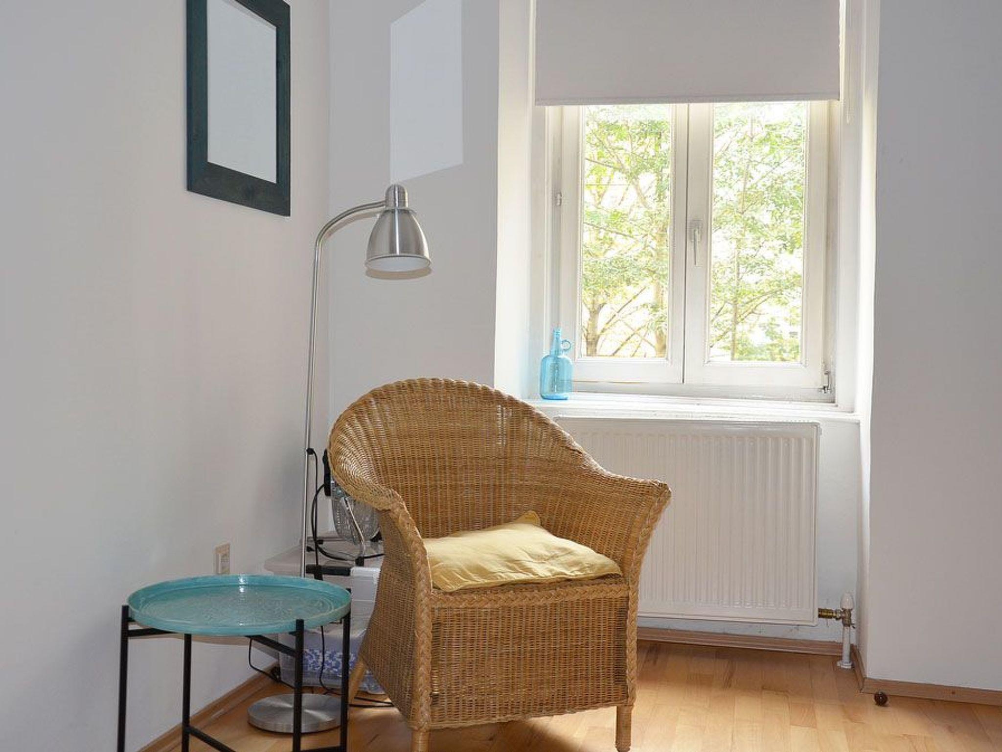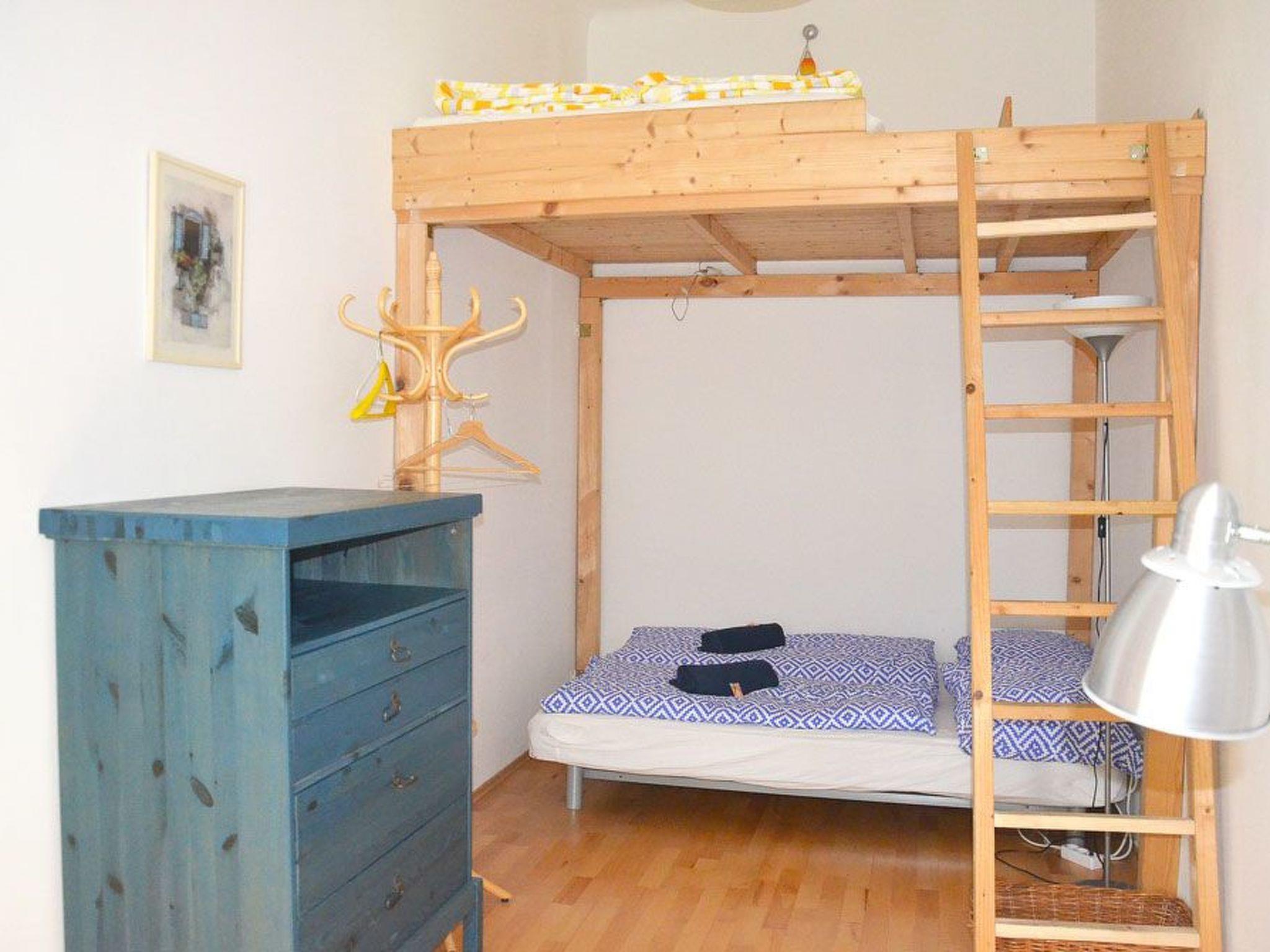 Inside, a lovingly furnished flat awaits you, consisting of a fully equipped kitchen, two separate bedrooms for your privacy, a cosy living room and bedroom and a bathroom with washbasin and shower. Characteristic of old Viennese town houses, you will find the WC in a separate room. The bedrooms are tastefully furnished: The large bedroom offers a double bed with a width of 1.80 m, while the smaller room not only has a sofa bed with a width of 1.40 m, but also a bunk bed for two people with a 1.60 m wide mattress, ideal for enjoying the courtyard view in peace.