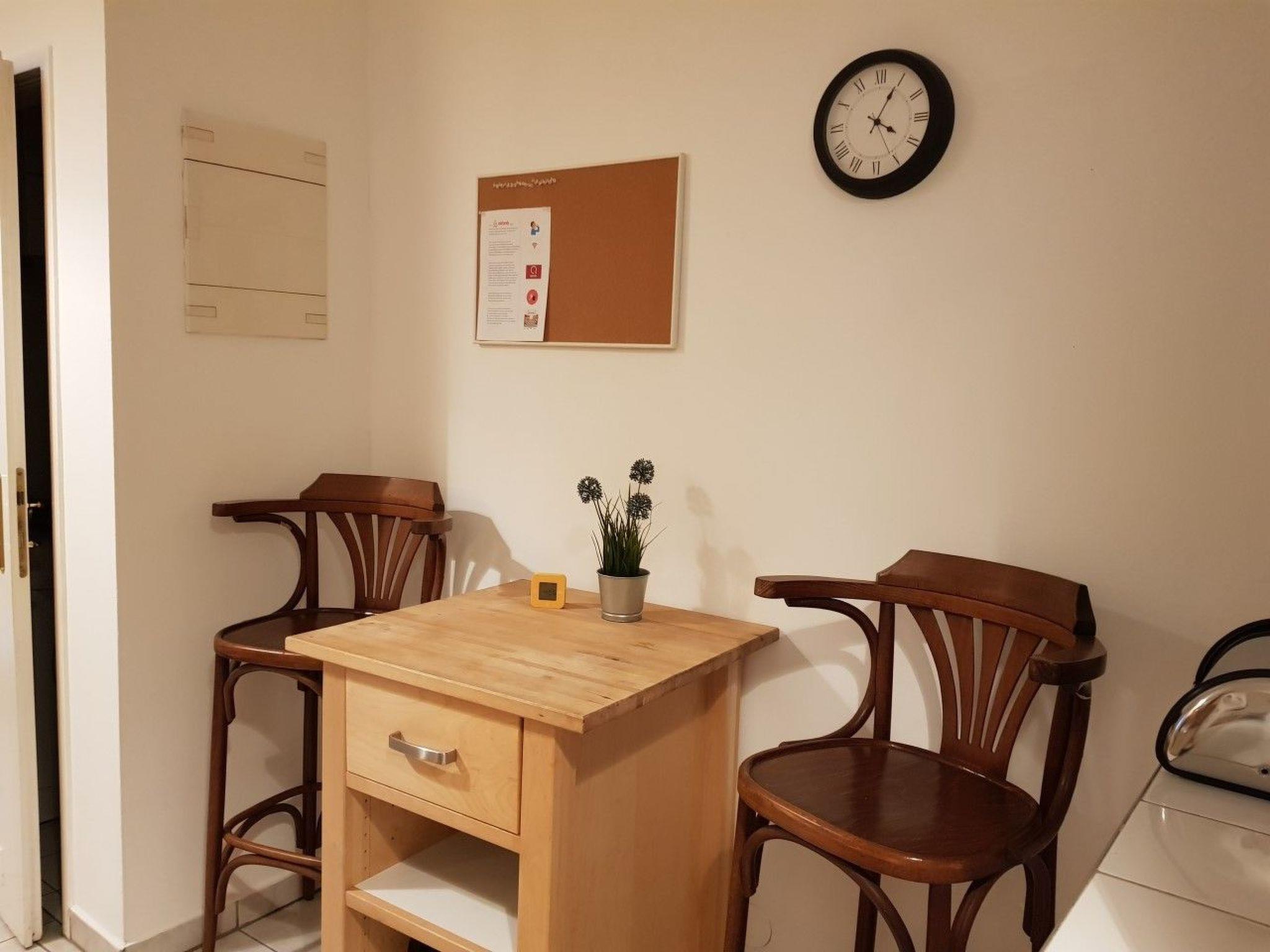 The flat is located on the 2nd floor and has a kitchen, a bedroom with a view of the quiet courtyard and a living/bedroom for a total of 4 people. Of course, there is also a bathroom and a WC for private and sole use.