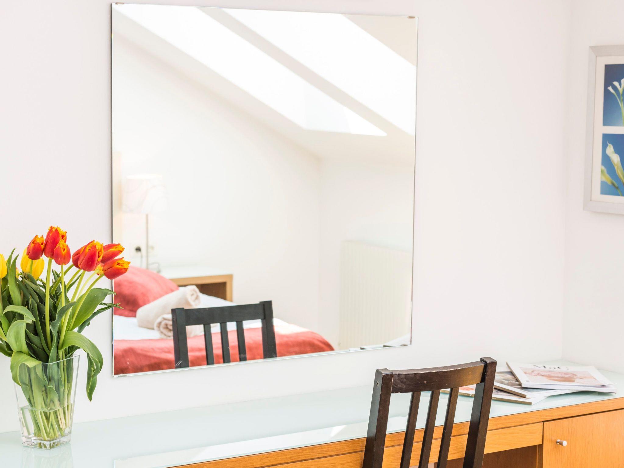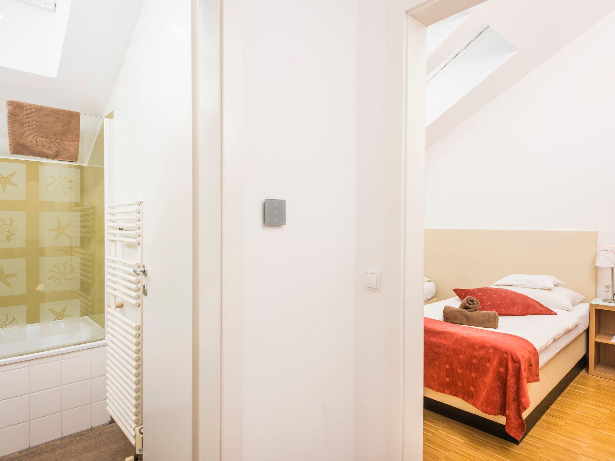 The roof terrace, which is for your exclusive use, is undoubtedly the highlight of this holiday flat. Located on the 4th floor, it allows you to relax in complete privacy and enjoy the fresh air. The terrace, with a direct view of the green inner courtyard, is a true oasis in the city where you can dine al fresco, read or simply relax.