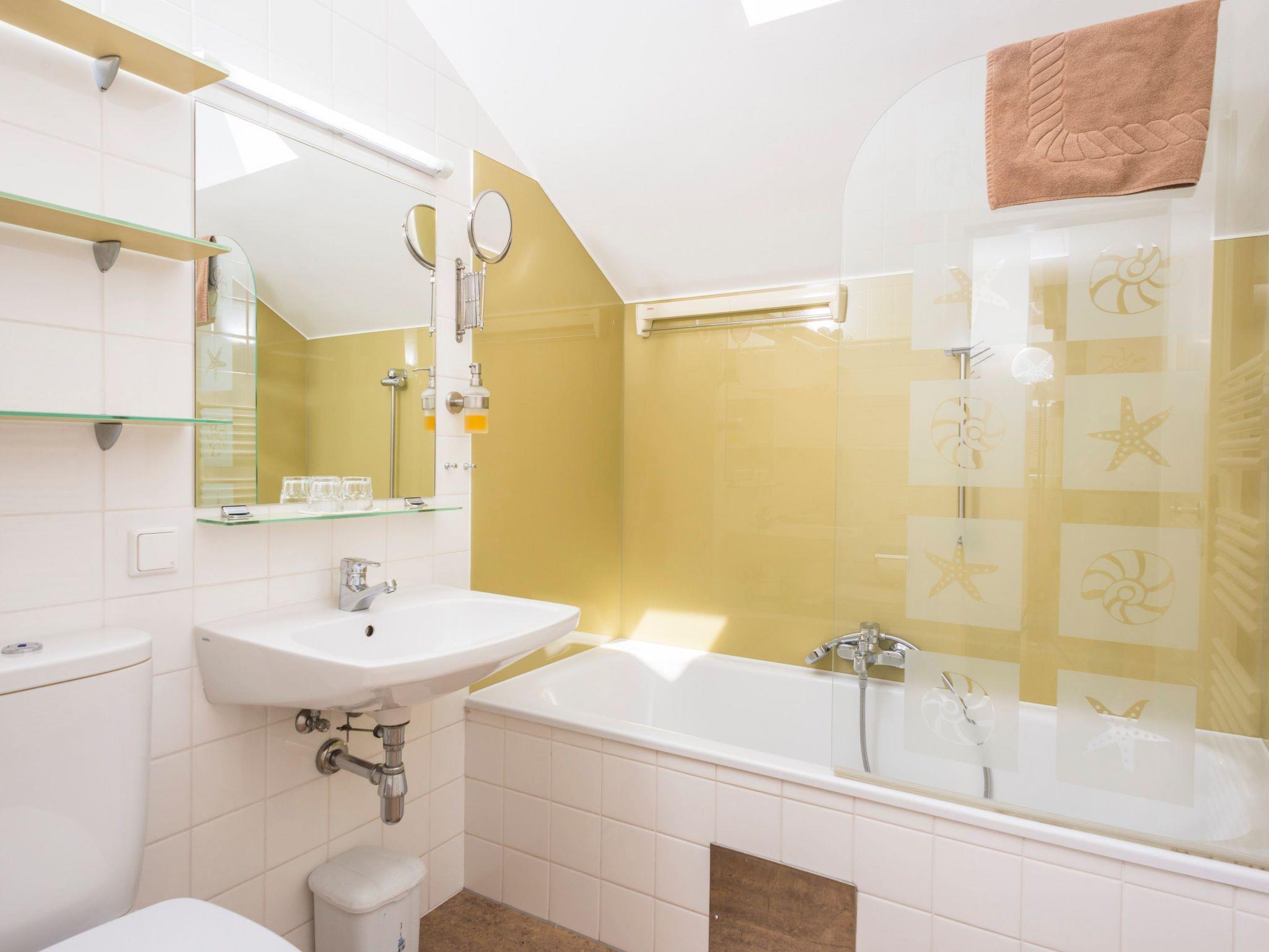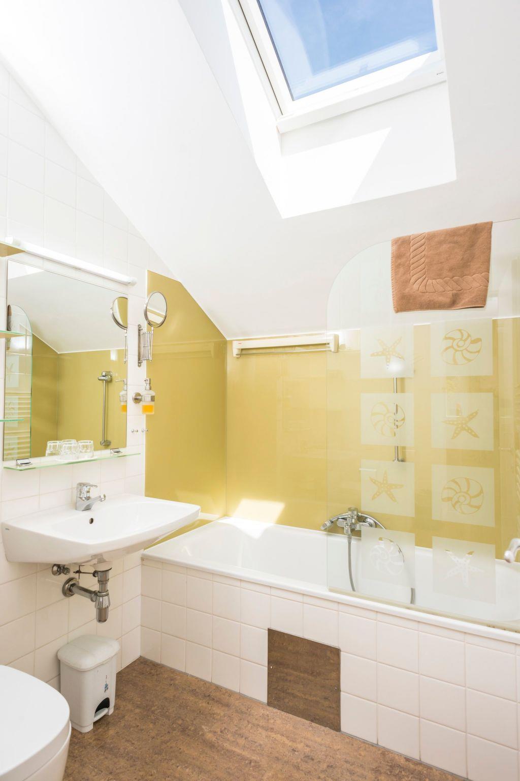 The flat is comfortably furnished and well equipped to make your stay as pleasant as possible. One bedroom ensures a peaceful night's sleep, while the spacious living room with a seating area invites you to relax. For self-catering, you will find a fully equipped kitchen that leaves nothing to be desired - including a filter and capsule coffee machine, dishwasher, kettle and all the necessary cooking utensils. The bathroom with bathtub offers additional comfort, and for longer stays there is a washing machine for communal use in the building.