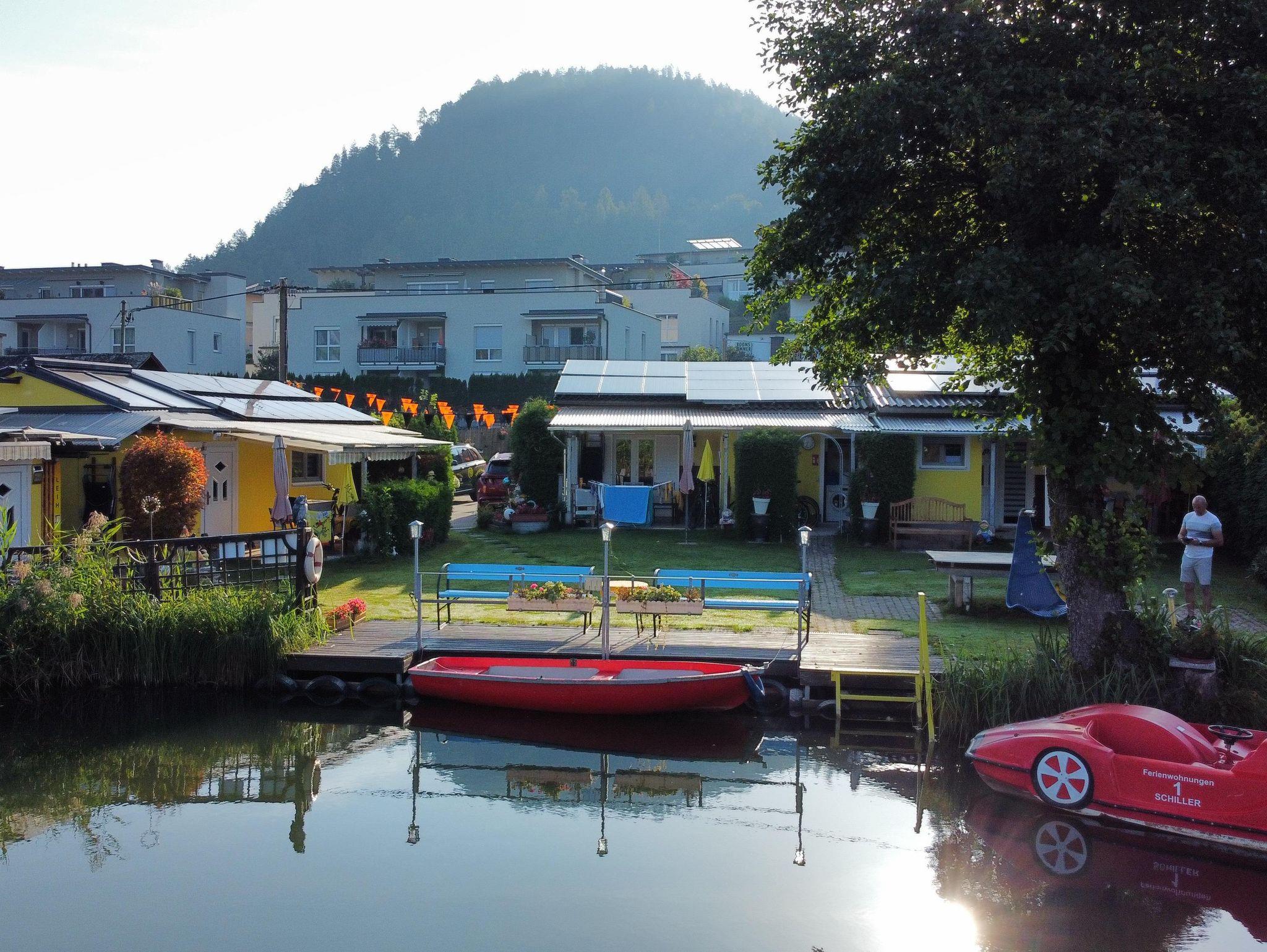 Erleben Sie Freiheit bei Ferienwohnungen Schiller! Umgeben von der faszinierenden Natur Österreichs, bieten die Ferienwohnungen Schiller in Landskron einen unvergesslichen Rückzugsort. Direkt an einem idyllischen Fluss gelegen, können Sie das klare Wasser und die grüne Wiesenlandschaft in vollen Zügen genießen. Hier erwartet Sie nicht nur ein eigener Badestrand, sondern auch die Möglichkeit, die hauseigenen Tretboote kostenlos zu nutzen!