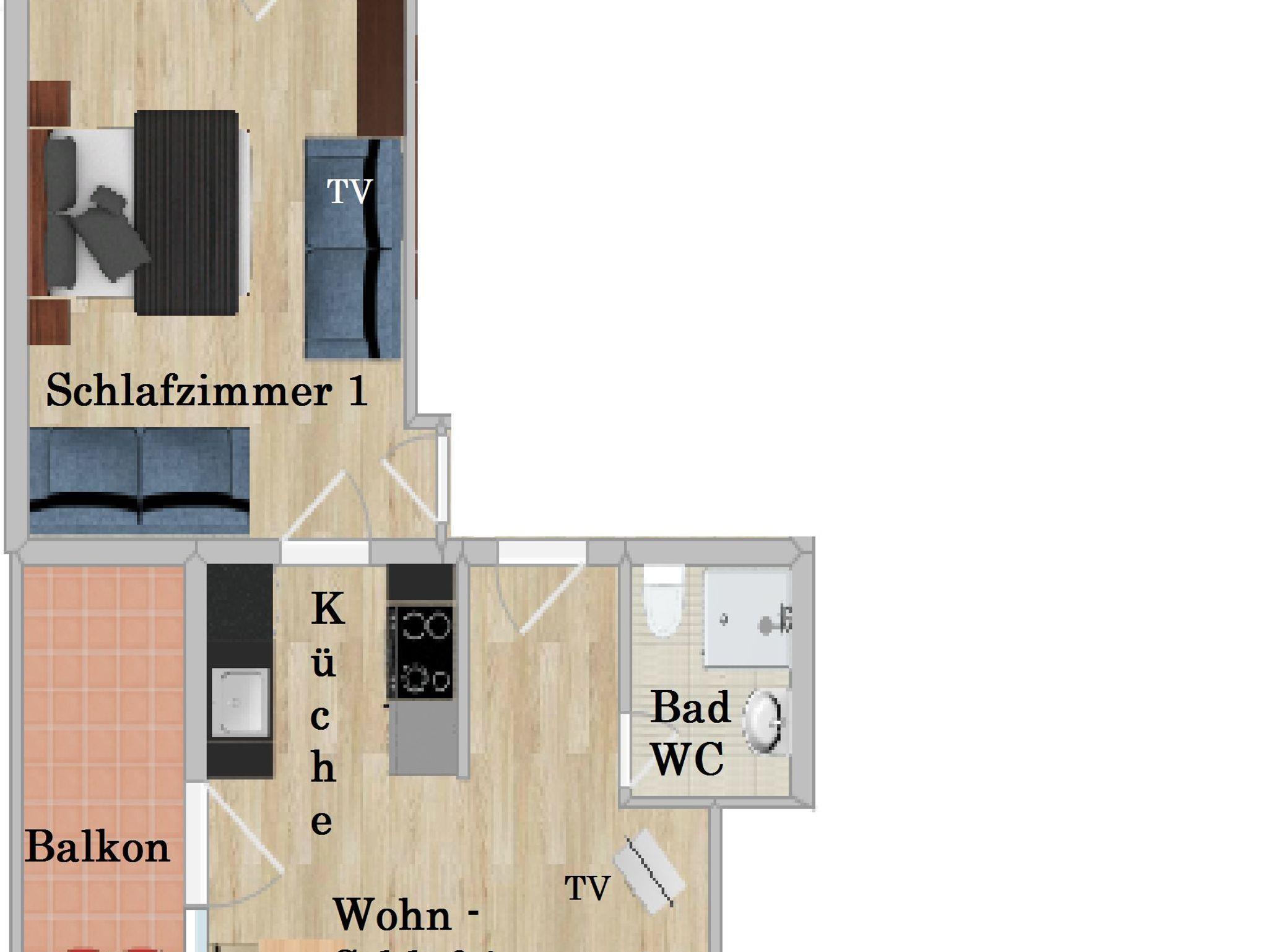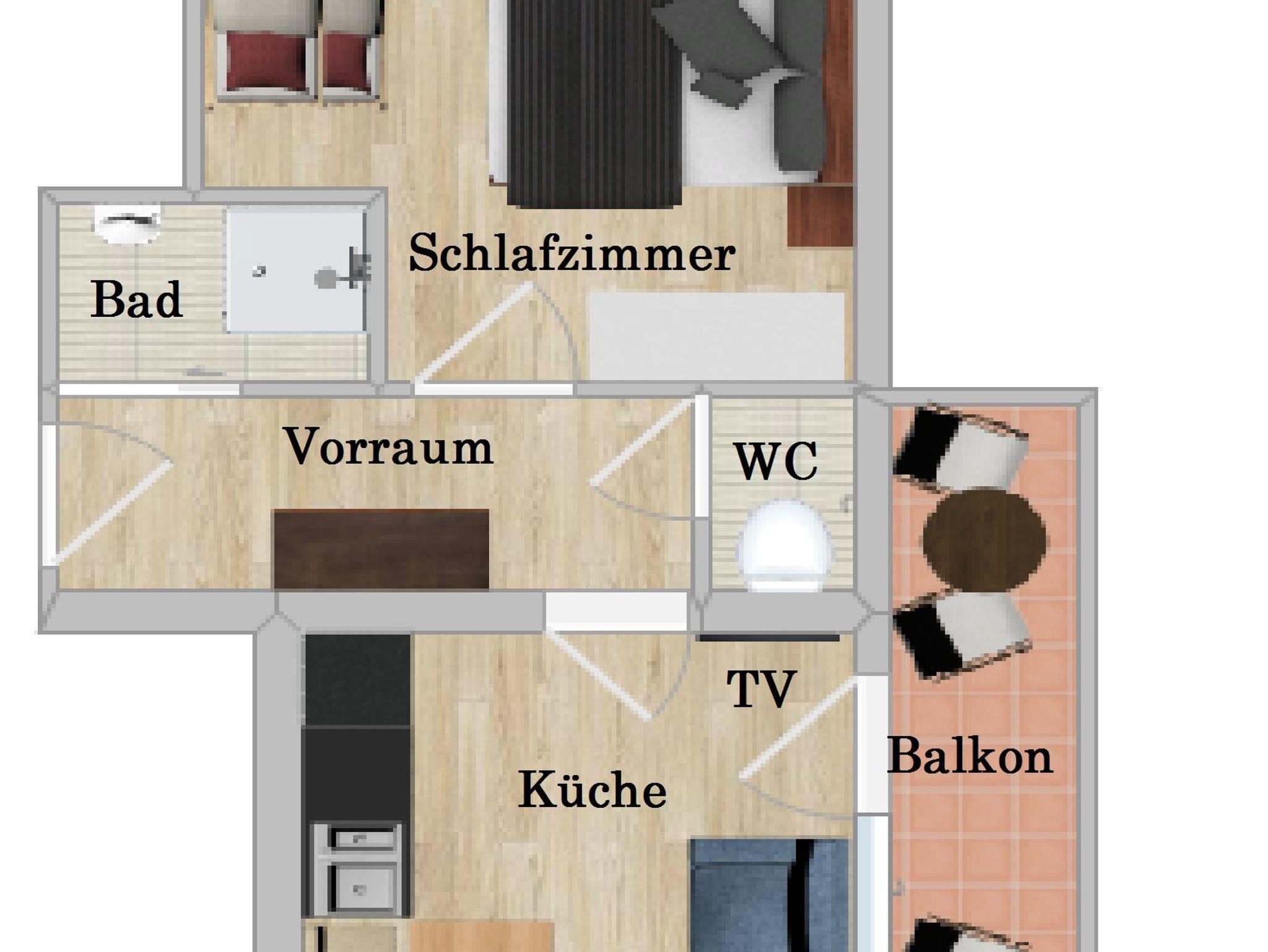 Ferienwohnung 50m²mit zwei Balkone und Seeblick beim Wohnraum und Gartzenmöbel, geeignet für 2 bis 3 Erwachsene oder 2 Erwachsene mit 1 oder 2 Kinder.
