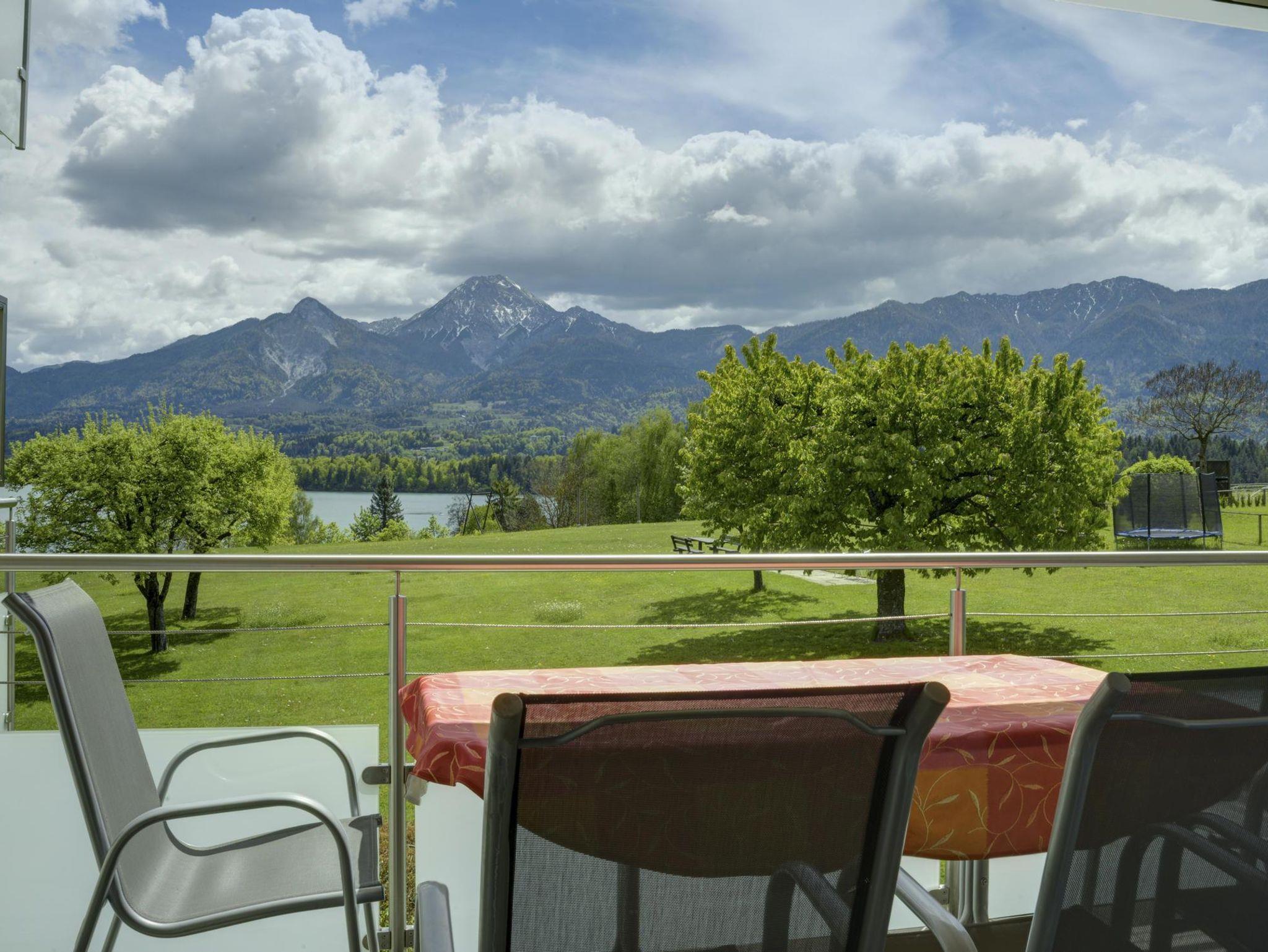Komplett neue Ferienwohnung im Haus Mittagskogel mit Wohnschlafraum + 2 Schlafzimmer, Südbalkon und Seeblick, herrlichen Panoramablick, im 2.Stock, modern eingerichtet mit hellen Holzmöbel und Holzfußböden, große Dusche, WC getrennt, Kochnische mit Geschirrspüler und Mikrowelle, Bett- und Tischwäsche, Handtücher, Haustelefon, Radio, SatTV im Wohnzimmer und Kinderzimmer, WLAN, Tresor, Sonnenschirm...