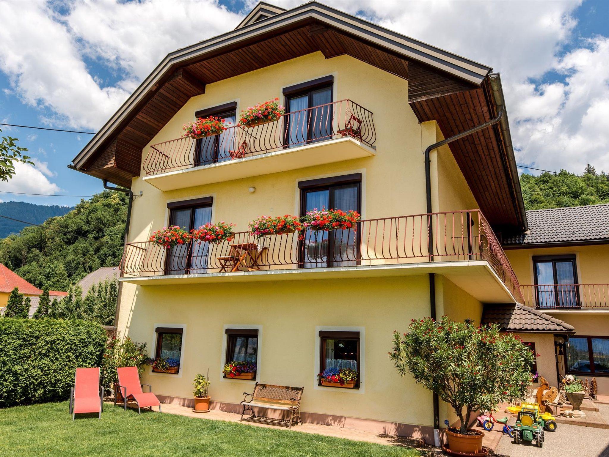 Wir bieten: drei ebenso schöne wie komfortable Ferienwohnungen mit Blick auf die Burgruine Landskron, die Karawanken und den Naturpark Dobratsch.