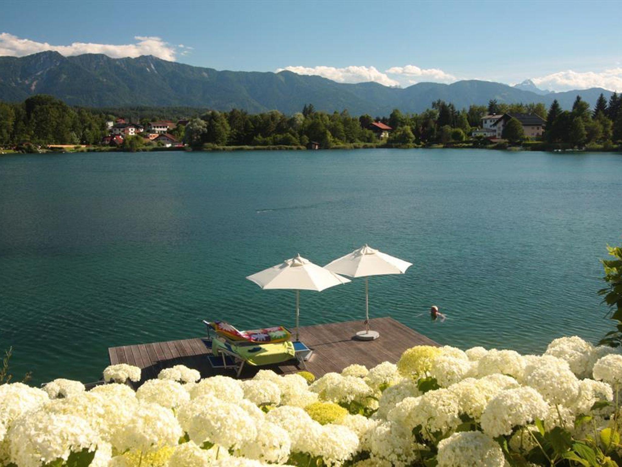 Unsere Badestrand hat einen atemberaubenden Blick auf Kärntens Bergwelt. Vielleicht läd Sie dieser Blick auf die Karawanken und die Julischen Alpen zu einer Bergwanderung ein. Anschließend erlauben bequeme Liegen mit Sonnenschirmen rasches Abschalten. Sie werden von den atemberaubenden Seestimmungen begeistert sein. Professionelle physiotherapeutische Beratung in unserem neuen Yogaraum, sowie ein Tretboot und ein Kinderspielplatz stehen für Sie bereit.