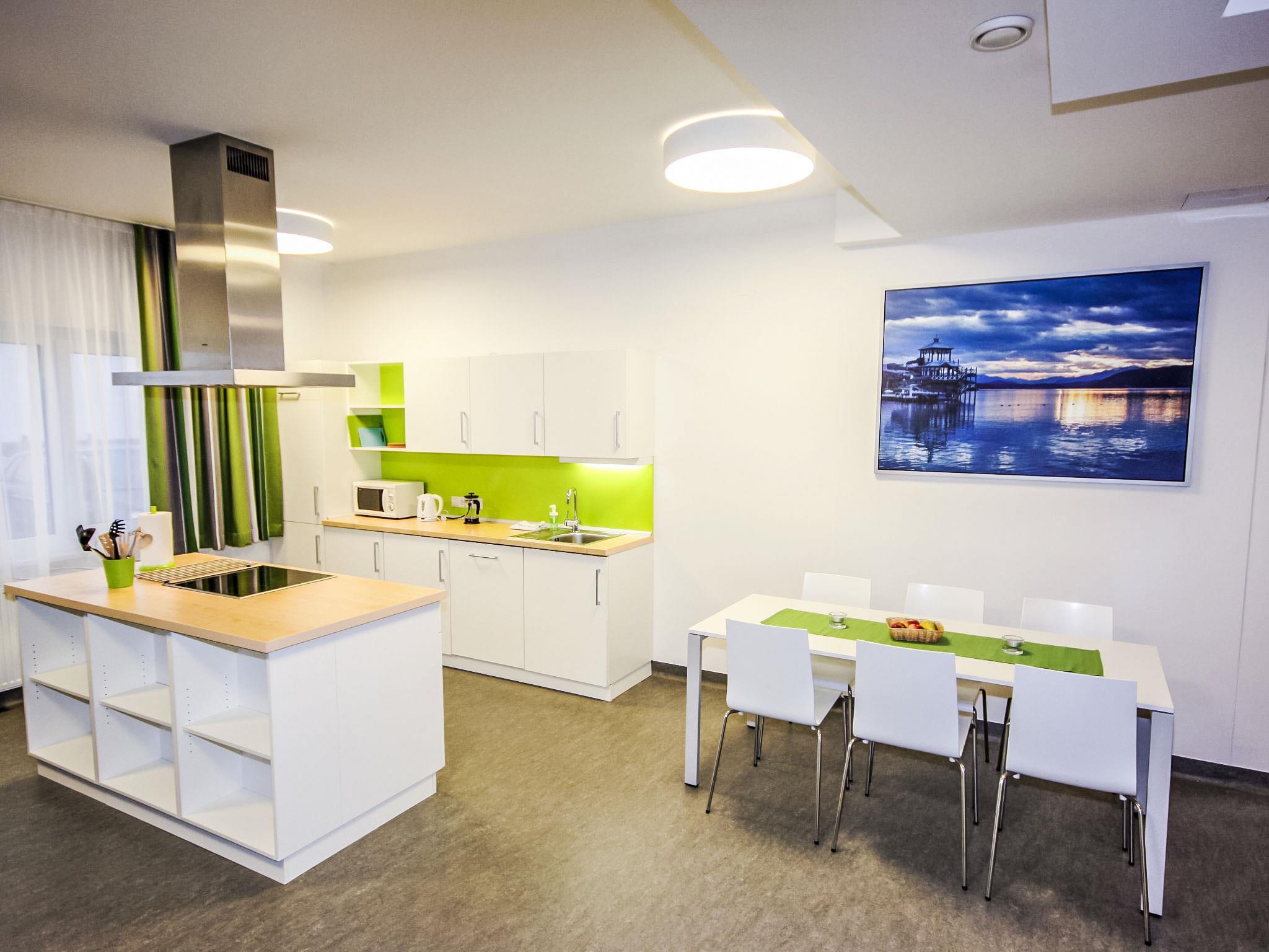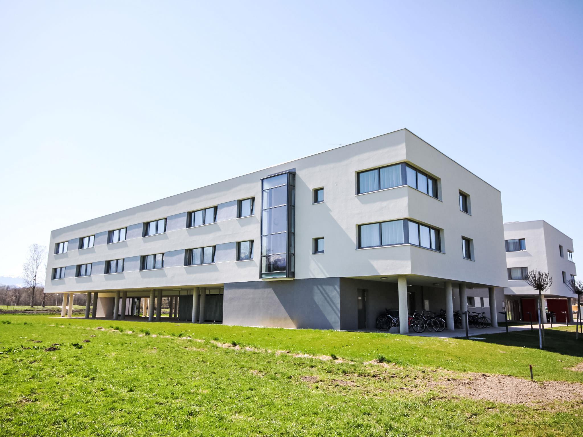 The modern student residence STUWO Villach is located in a sunny and quiet location with good connections to the public transport and cycle path network (lockable cycle room available on request). The city center is 4.5 km away. The surrounding lakes (Silbersee, Magdalenensee, Grünsee), the Drau and countless leisure activities can be reached in a few minutes. Modern apartment block "Techno-Park Villach". In the district of Villach-St. Magdalen, 4.5 km from the centre, in a quiet, sunny position, 2 km from the lake, directly by the river. In the house: internet access, sauna, fitness room (all included), central heating system, washing machine, tumble dryer (extra). Parking at the house. Supermarket 3 km, restaurant 500 m, bus stop "Villach-Campus" 100 m, thermal baths "Therme Warmbad-Villach" 5.5 km, bathing lake "Silbersee" 2.1 km, lake Faaker See 8.1 km. Golf course (18 hole) 6.8 km, surf school 8.9 km, sailing school 8.9 km, cycle lane 10 m. Nearby attractions: Burg Landskron 6 km, Terra Mystica, Terra Montana 27 km, Minimundus 33 km. Well-known lakes can easily be reached: Ossiacher See 7 km, Wörther See 15 km, Silbersee 3 km. Hiking paths: Naturpark Dobratsch 12 km. Please note: Additional accommodations can be booked.