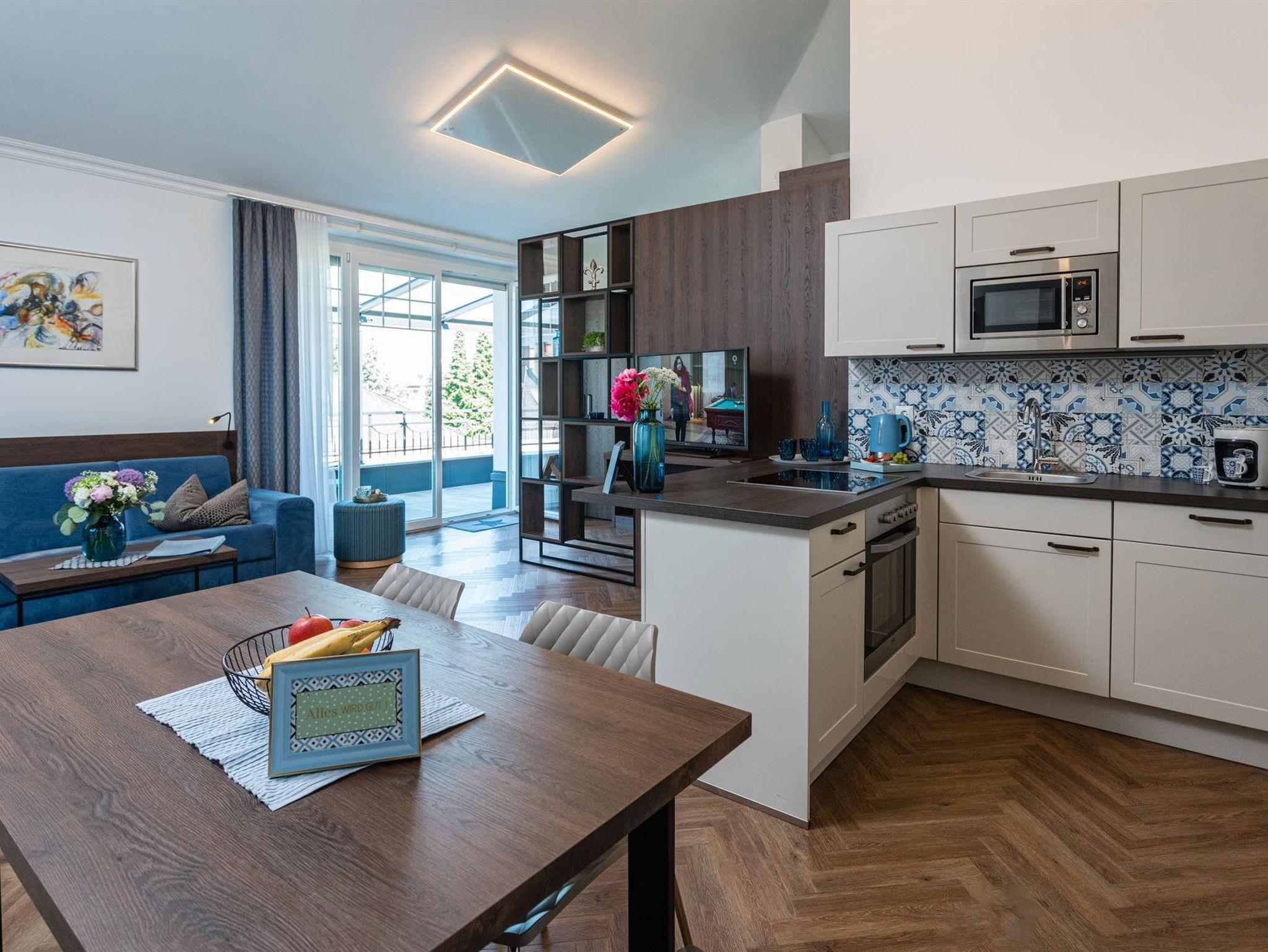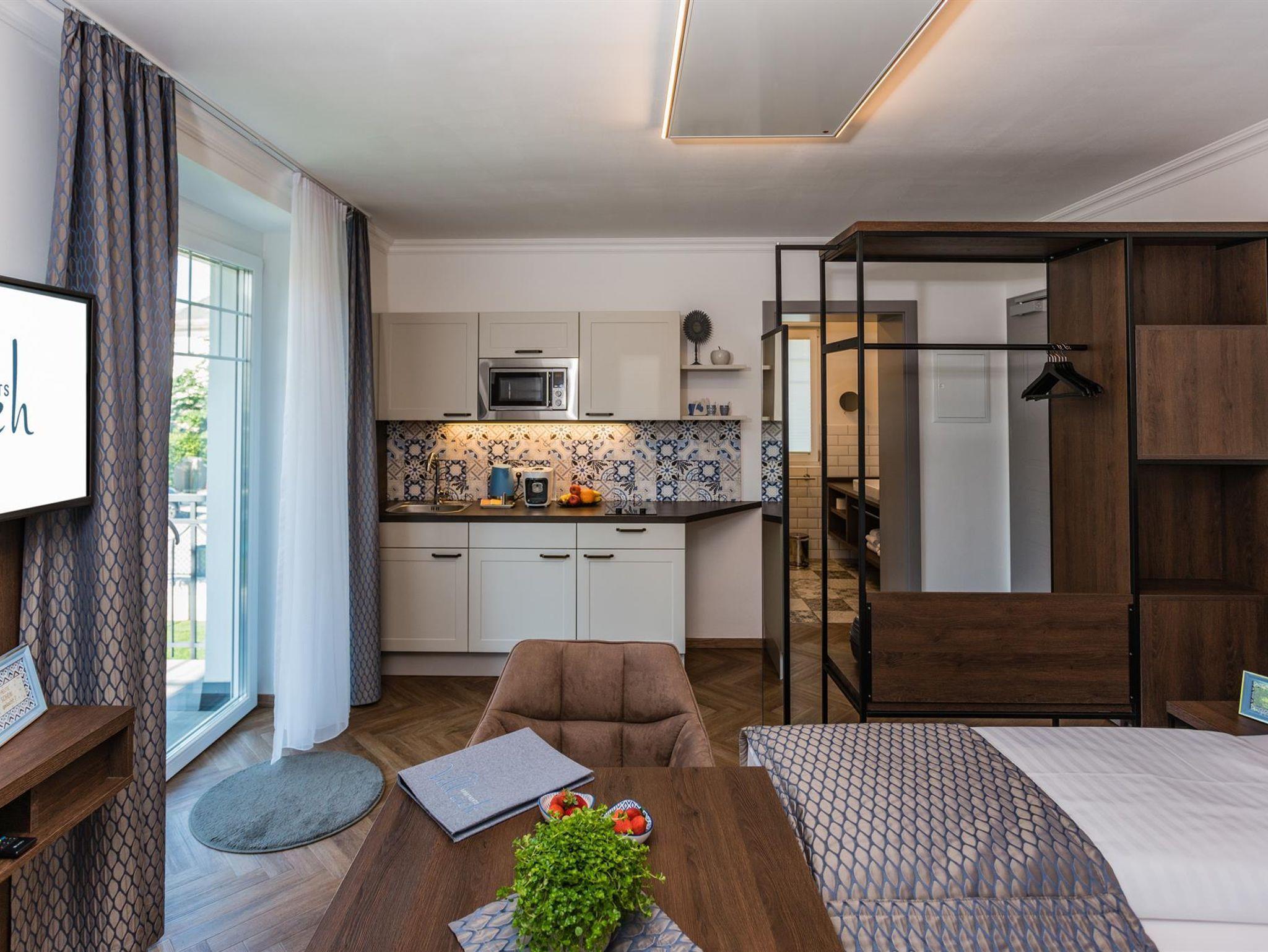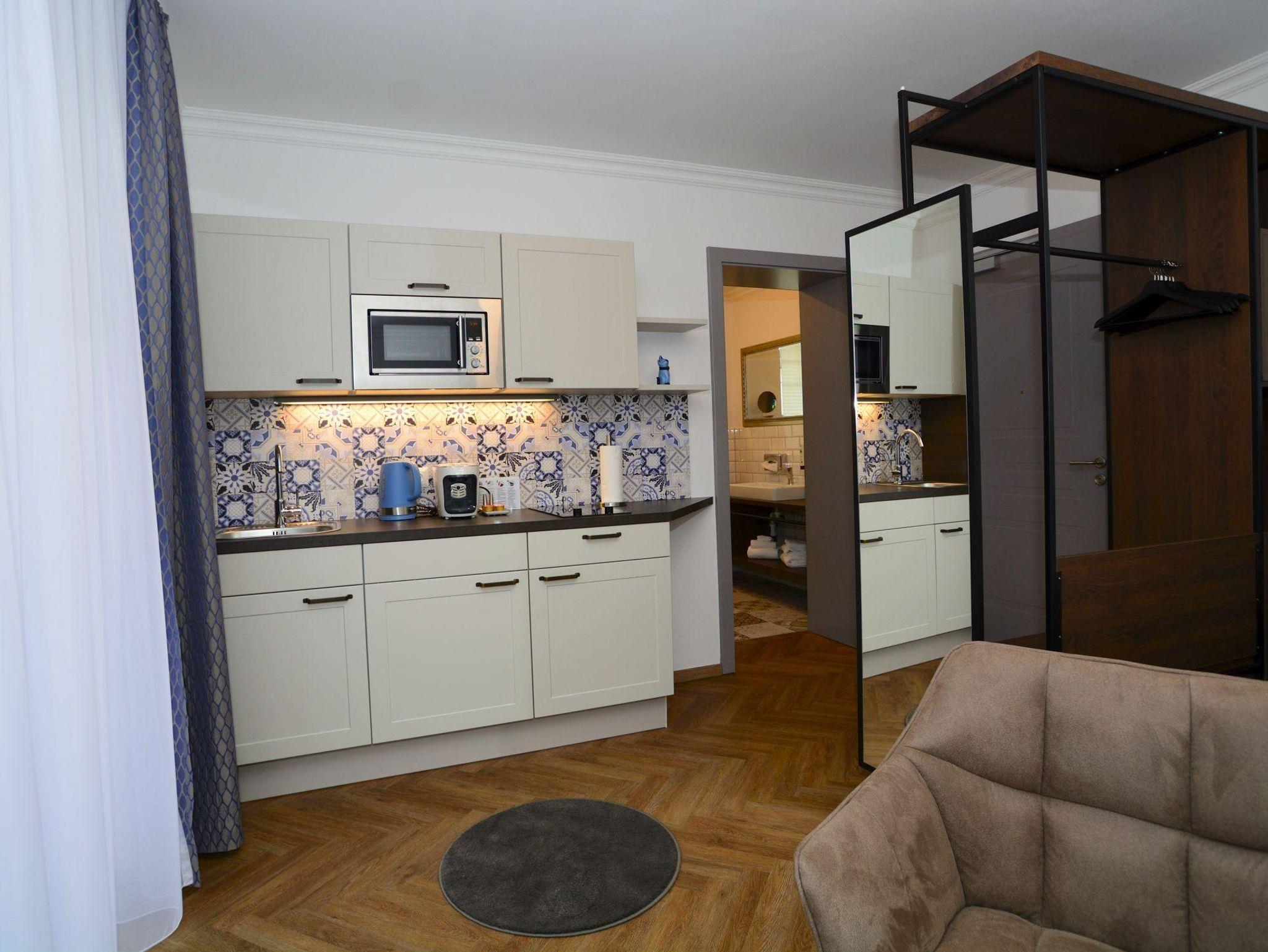 Business Apartment. Dieses Apartment und verfügt über ein Bad mit Dusche/WC und eine Küchenzeile .