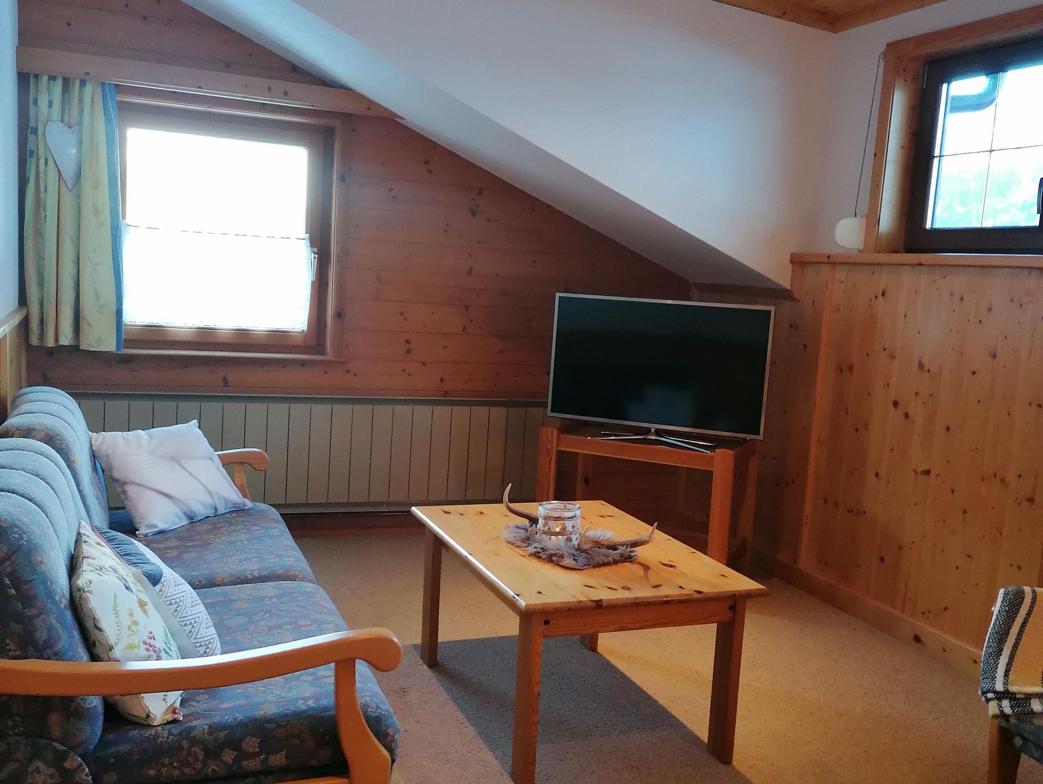 Die renovierte 70 m² große Ferienwohnung für 2 - 7 Personen liegt im Dachgeschoss des Bauernhauses und ist mit