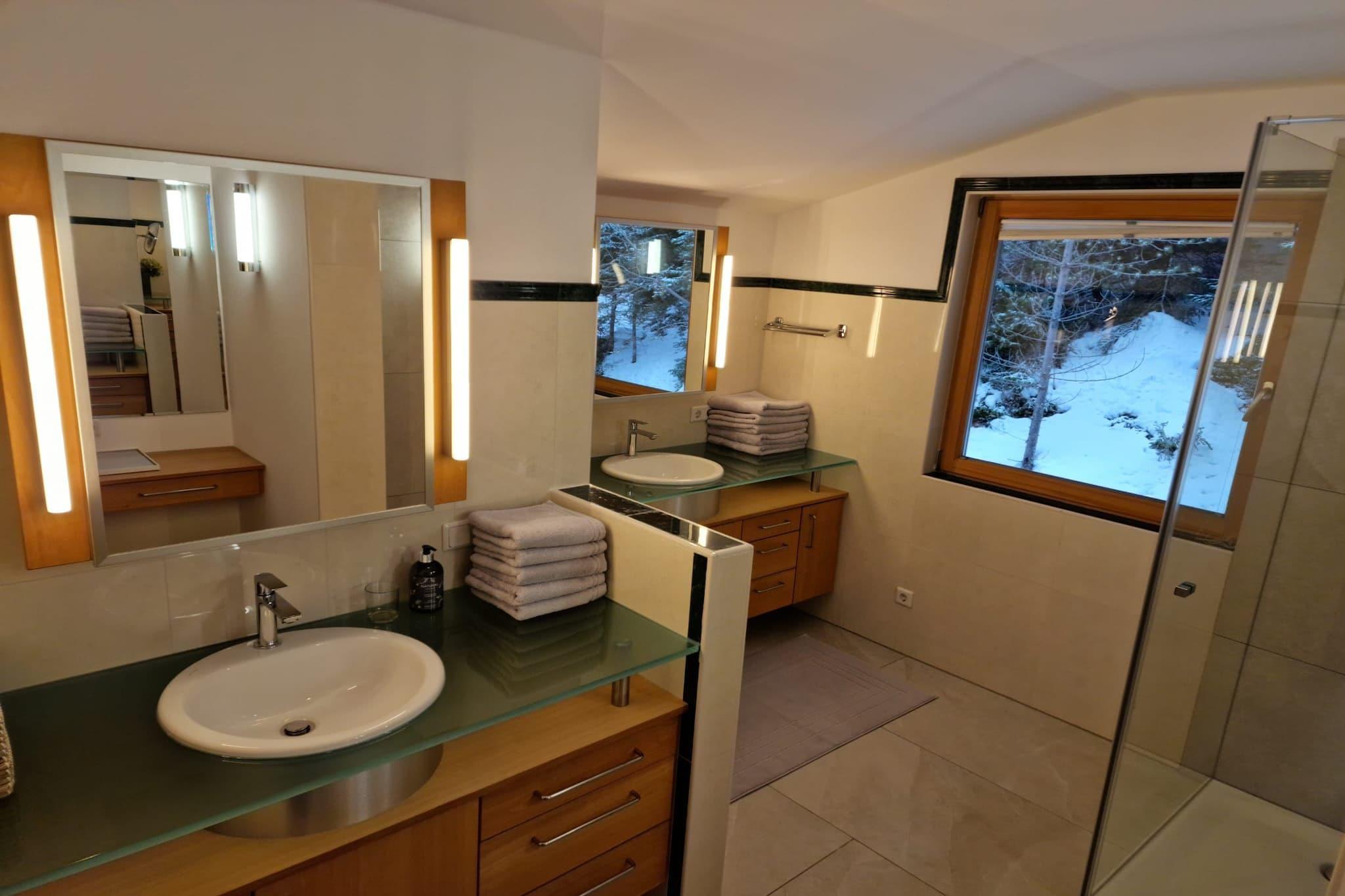 Landhaus Waldhof har en fredelig beliggenhed og tilbyder det perfekte tilflugtssted med en fantastisk panoramaudsigt. Gemt for enden af Großvolderberg sikrer dette charmerende hus ro og er ideelt til en afslappende ferie. Den delvist indhegnede ejendom tilbyder parkering til flere køretøjer, med overdækkede pladser til to. Snekæder er vigtige om vinteren. Nænsomt restaureret, huset kombinerer moderne komfort med alpin charme. Stuen, der har en elektrisk kakkelovn, skaber en hyggelig atmosfære, især ved komfurbænken. Den rummelige spiseplads med et rundt bord og bænke er perfekt til måltider med naturskøn udsigt. Et højdepunkt er stuen i alpehytte-stil, ideel til at slappe af eller spille spil. Det store køkken er fuldt udstyret med separat forsyningsrum til køleskab og fryser. Det første soveværelse har udsigt til terrassen, mens det ekspansive udendørs rum omfatter en muret kulgrill og opholdsområde. Ovenpå fremmer soveværelset af fyrretræ en afslappende søvn, og et andet hyggeligt soveværelse er fantastisk til familier. Det rummelige badeværelse har dobbelt håndvask, bruser og toiletbord med separate toiletter på hver etage. Det lyse træningsrum byder på yogamåtte og motionscykel, mens stuens panoramavinduer viser bjergene. Kælderen byder på spabad, sauna og liggestole til afslapning. Om sommeren er haven en privat oase, og om vinteren er beliggenheden perfekt til skiture, med Glungezer-skiområdet kun 22 minutter væk.