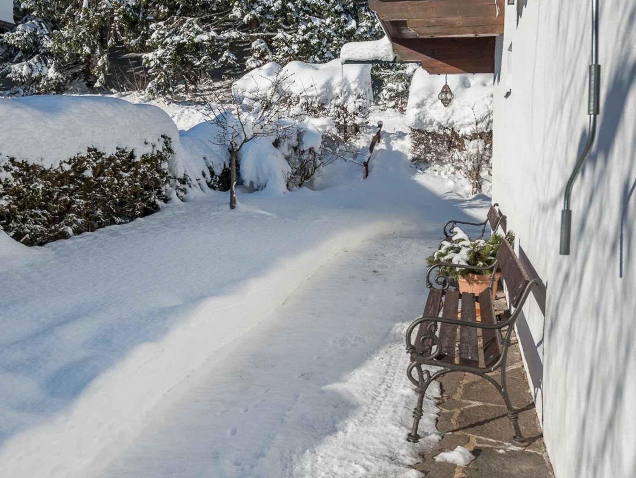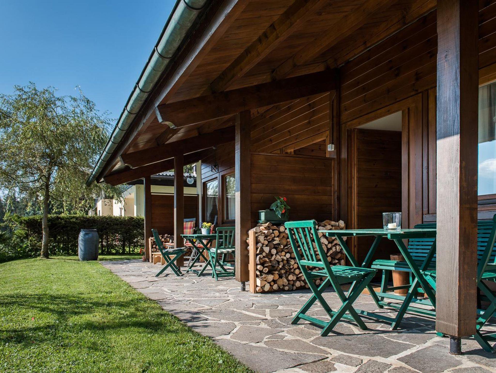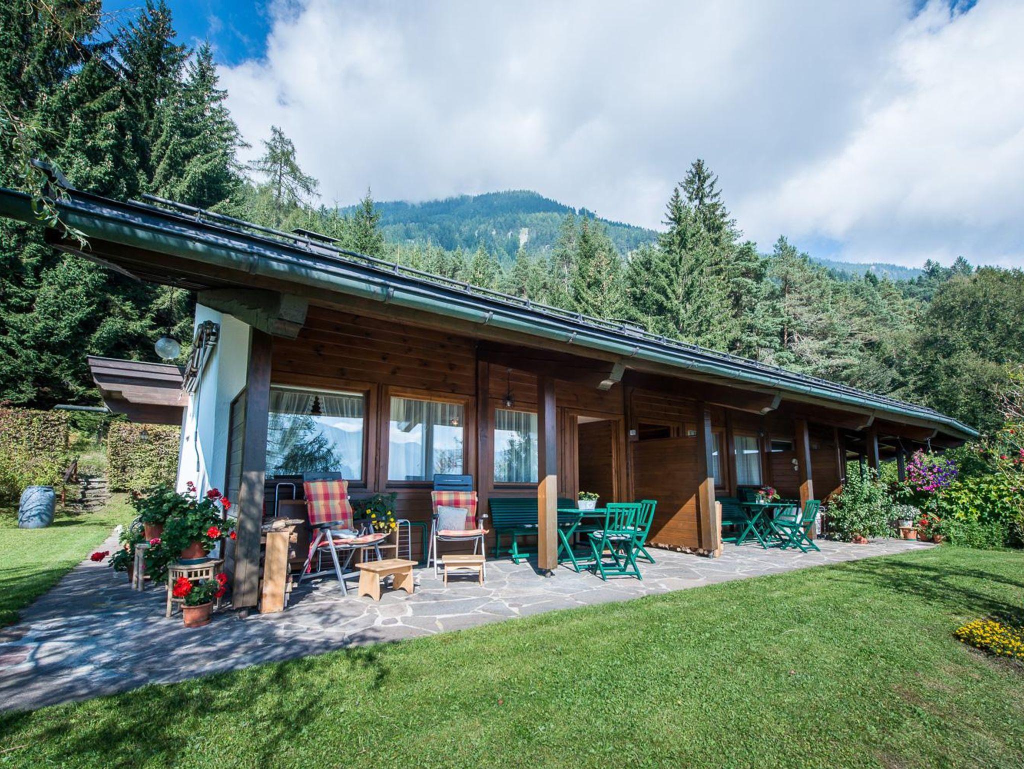 Im Aussenbereich Sitzmöglichkeit und Wiese mit herrlicher Talsicht