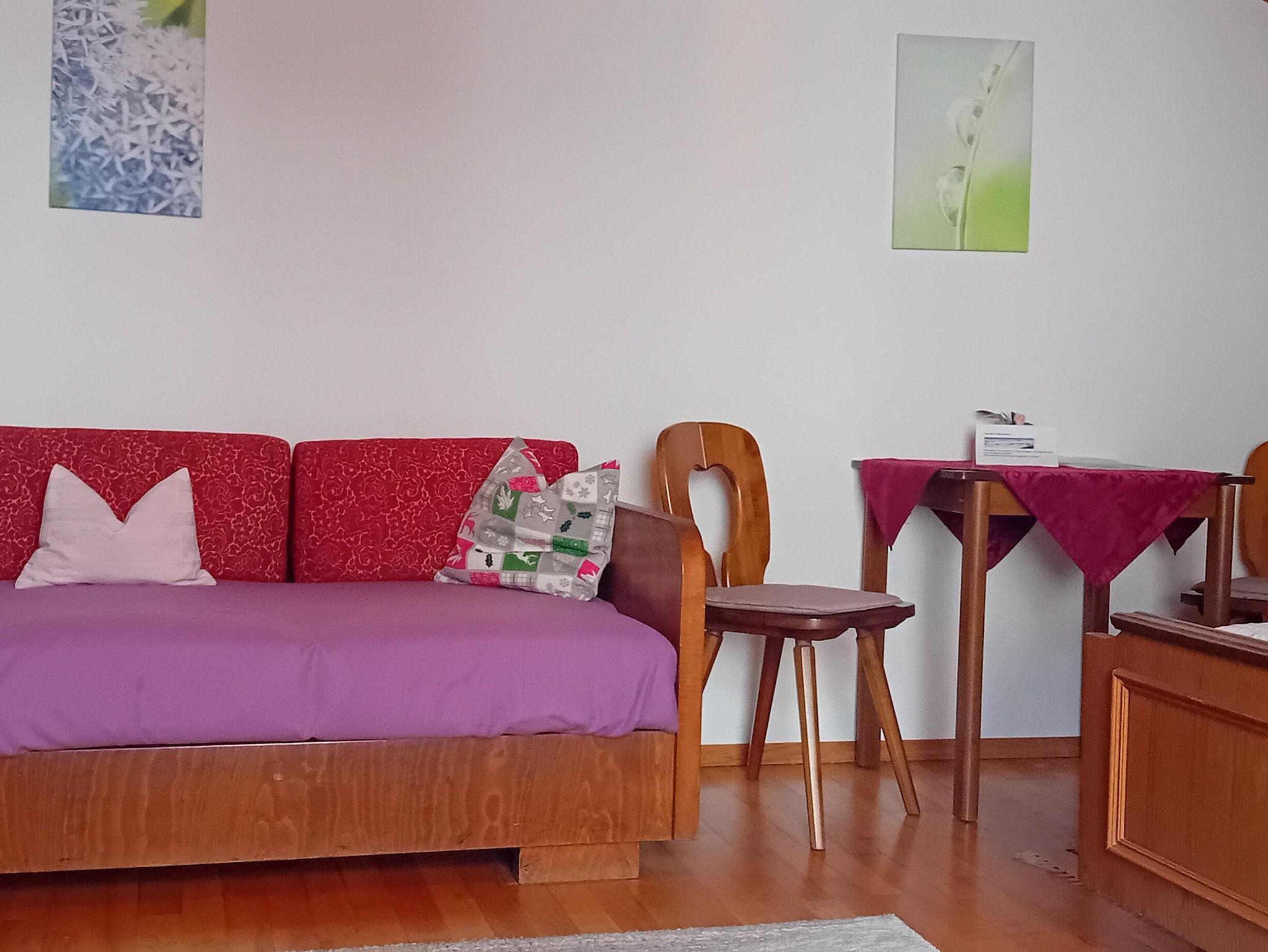 Unseren Gästen steht eine voll aus gestattete Ferienwohnung, zwei Komfortdoppelbettzimmer sowie ein Einbettzimmer mit Dusche und WC zur Verfügung. In jedem Zimmer befindet sich eine heimelige Sitzecke. Wasserkocher und Kühlschrank sind in jedem Zimmer vorhanden. Damit Sie das herrliche Bergpanorama in vollen Zügen genießen können, befindet sich bei jedem Zimmer ein gemütlicher Balkon mit Sitzmöglichkeiten. In jedem Zimmer befindet sich TV mit integriertem Radio. In jeder Jahreszeit lädt die Liegewiese zum Verweilen ein. Bauen Sie einen Schneemann im Winter, etspannen Sie im Sommer! Der Wald als Naherholungsgebiet ist in 6 Gehminuten entfernt, da befindet sich ein Spielplatz und eine Forstmeile.