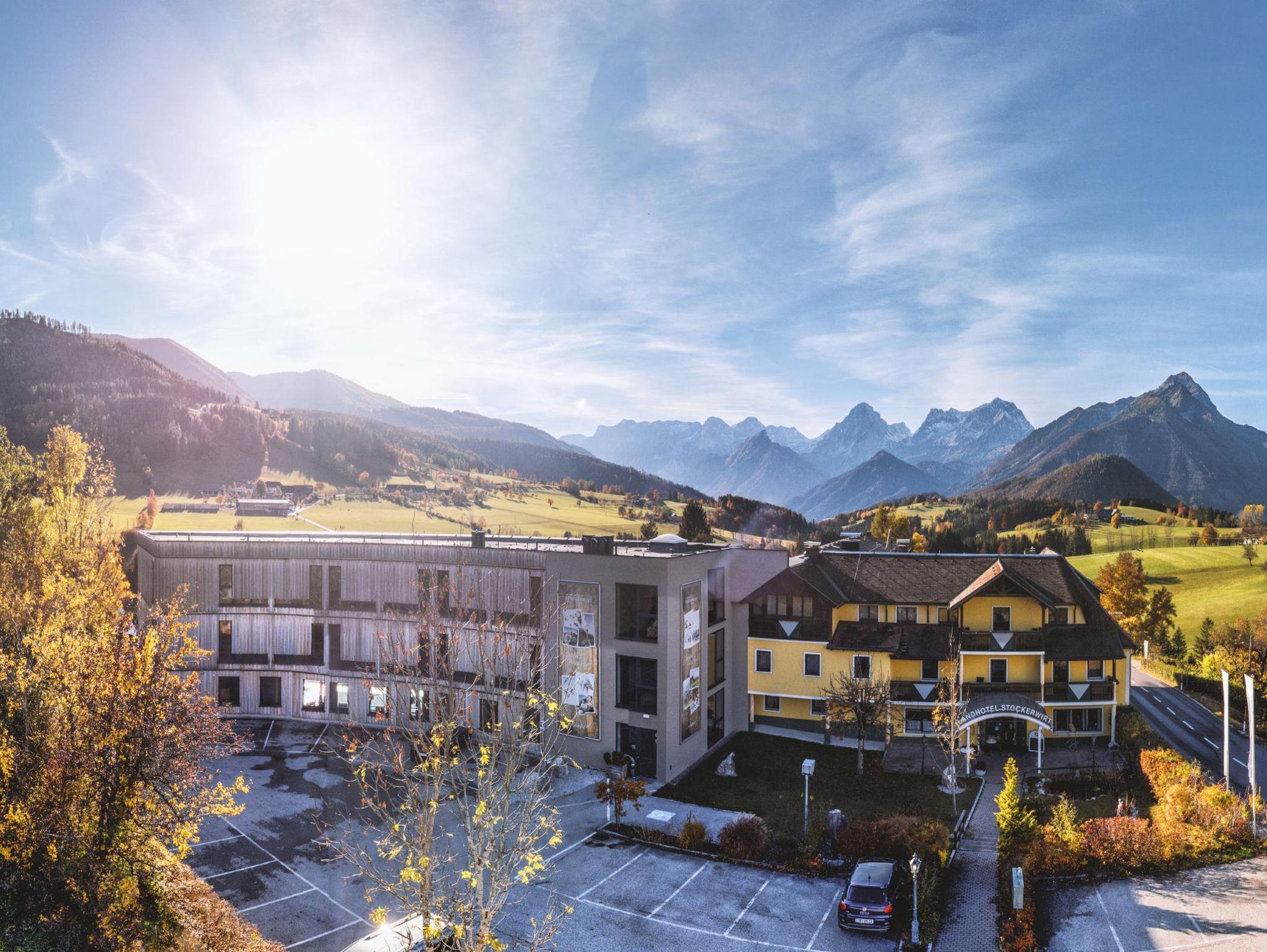 Unser 4**** Landhotel Stocker liegt inmitten der Bergwelt von Pyhrn und Priel mit seiner mächtigen Gebirgskulisse.