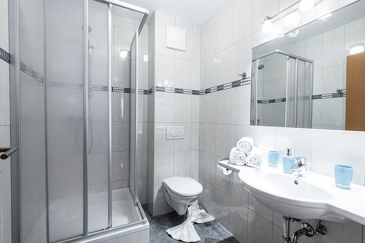 Im Keller befindet sich ein beheizter Ski- und Schuhraum. Im Erdgeschoss des Gebäudes befinden sich eine Bäckerei und eine Metzgerei.