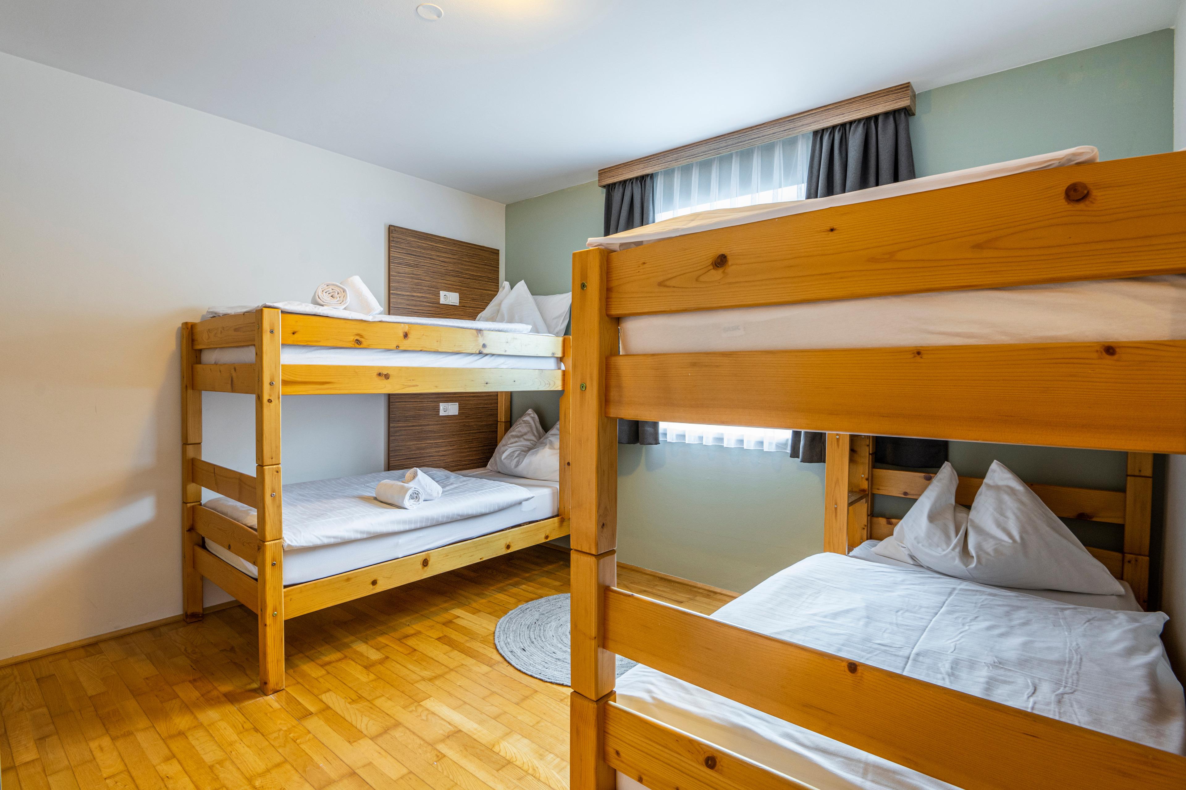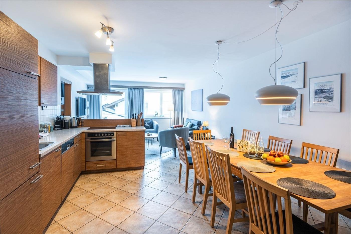 Im Keller befindet sich ein beheizter Ski- und Schuhraum. Im Erdgeschoss des Gebäudes befinden sich eine Bäckerei und eine Metzgerei.