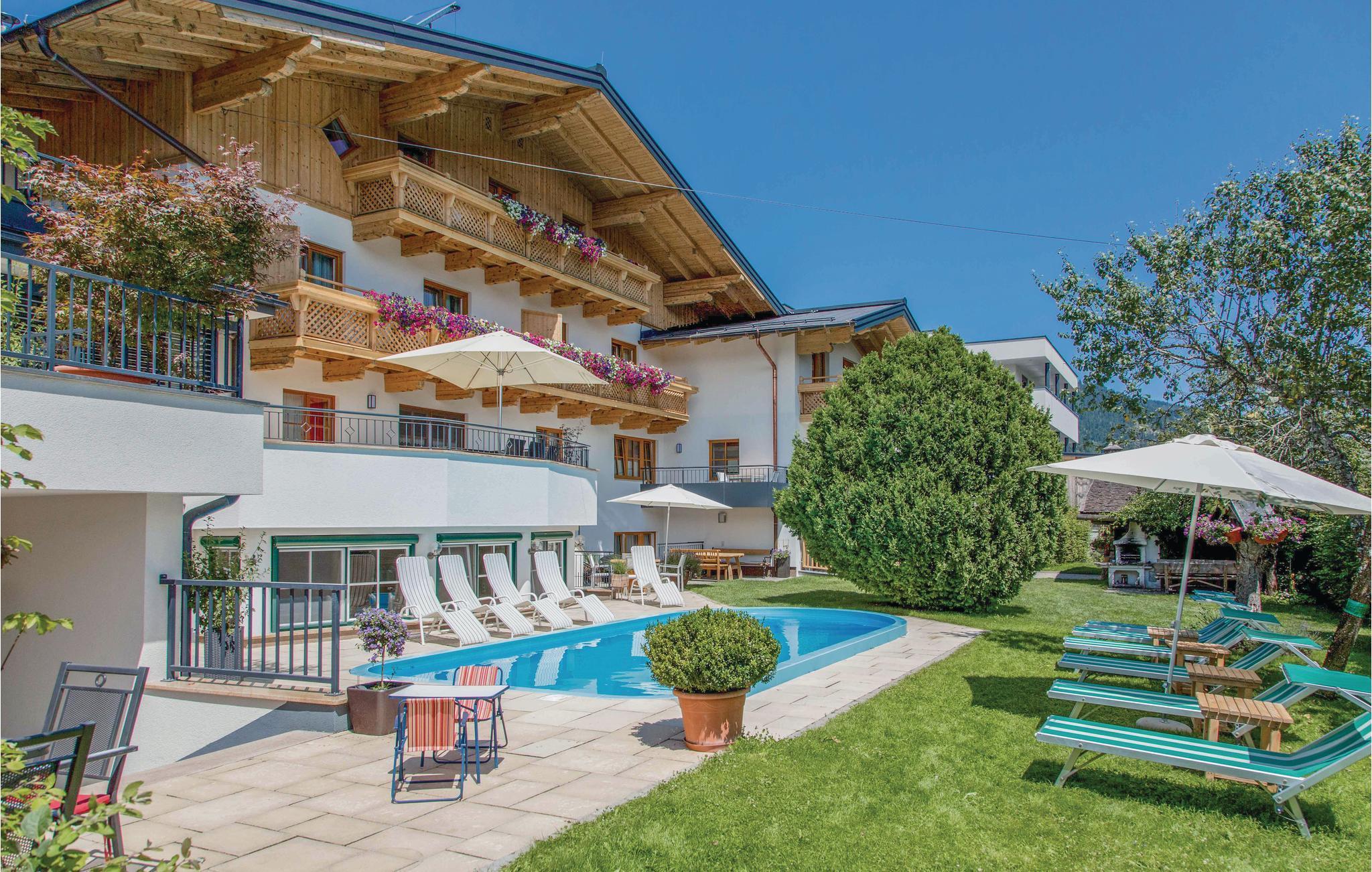 I Wagrain finder I dette wellnesshus med alle bekvemmeligheder, som vil gøre jeres ferie uforglemmelig. I huset findes fire lejligheder (ASA039, ASA041, ASA043, ASA044), som alle er meget komfortable og smagfulde indrettede. Den til huset hørende, opvarmede swimmingpool er til rådighed for alle gæster. Hertil kommer en legeplads, et område til solbadning samt en fodboldbane. Huset indeholder et stort wellnessområde med sauna (inkl. i lejen), dampbad, solarium, infrarød kabine, springvand, massagestol, fodbad, opvarmede bænke, afslapningsrum (nogle af faciliteterne mod betaling). Legeværelse, trampolin, bordtennis, m.v. til rådighed. Wagrain er ikke kun kendt for sine mange muligheder for vintersportsgrene. Om sommeren er der mange forskellige vandrestier, yderligere muligheder for fritidsaktiviteter omfatter cykling, mountainbiking eller klatring, men I kan naturligvis også bare slappe af og nyde ferien fuldt ud uden stress. På Grafenberg venter der børnene en natur- og oplevelsesverden med en eventyrlegeplads. I Radstadt ligger en 18-hullers golfbane. Der er mulighed for at tilkøbe morgenmad på stedet.