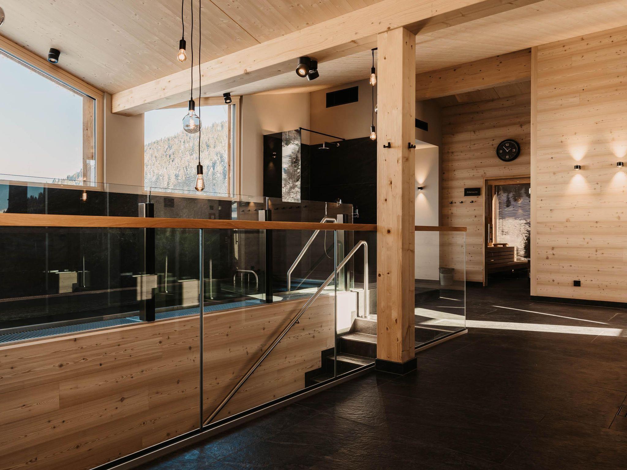 • Indoor Family Pool mit beheiztem Außenschwimmbecken, Kinderwasserrutsche, Textilsauna