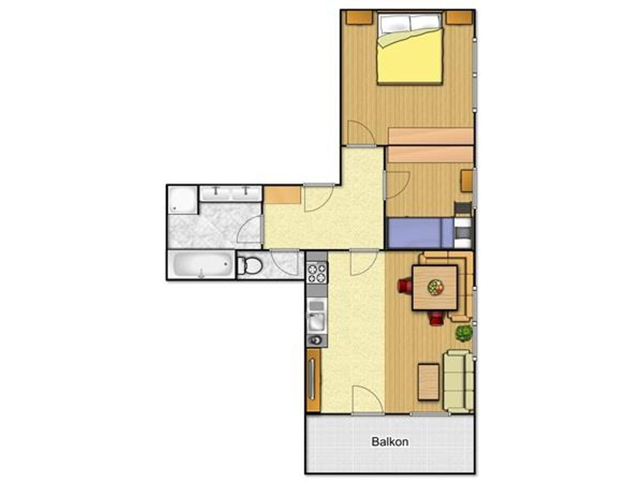 Das Classic Appartement E1 ist 60 m² groß und mit moderner Küche, 2 Schlafzimmern, kombinierter Küchen-Wohnbereich, Bad und Dusche, getrenntem WC, Kabel-TV, W-Lan Internetzugang und großem südseitigen Panoramabalkon ausgestattet.