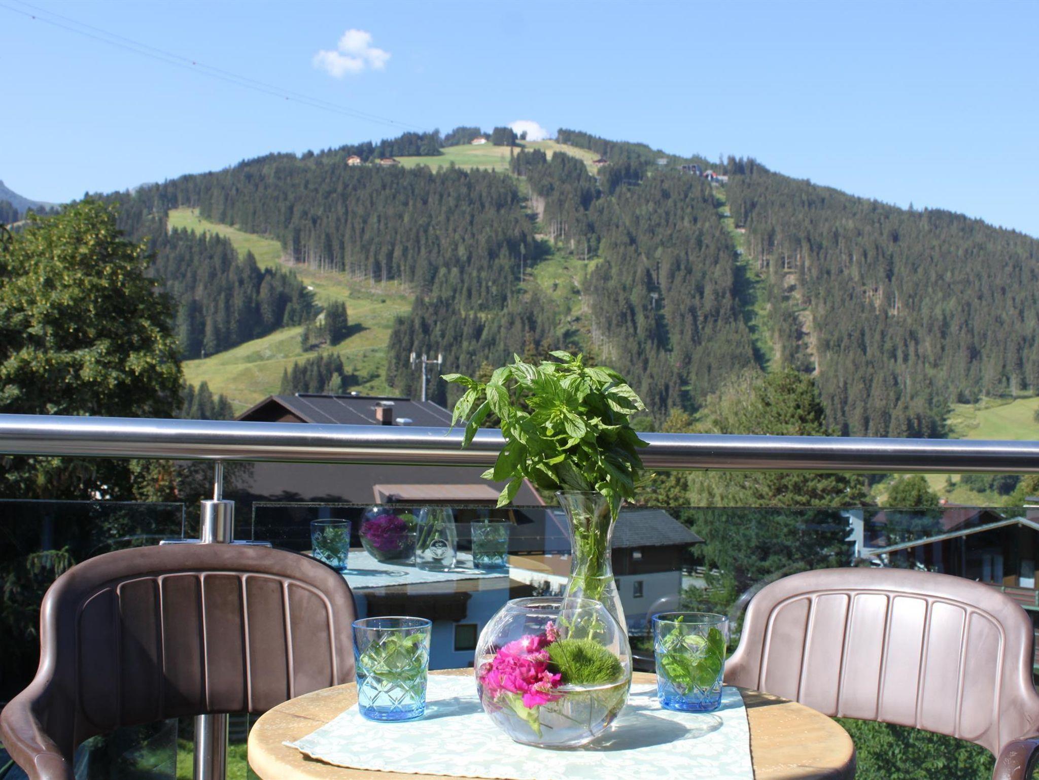 Die Penthouse Panorama Suite liegt im im dritten Stock mit großartiger Aussicht in die Wagrainer Berger, 2 x DU/WC und 1 x Toilette extra.