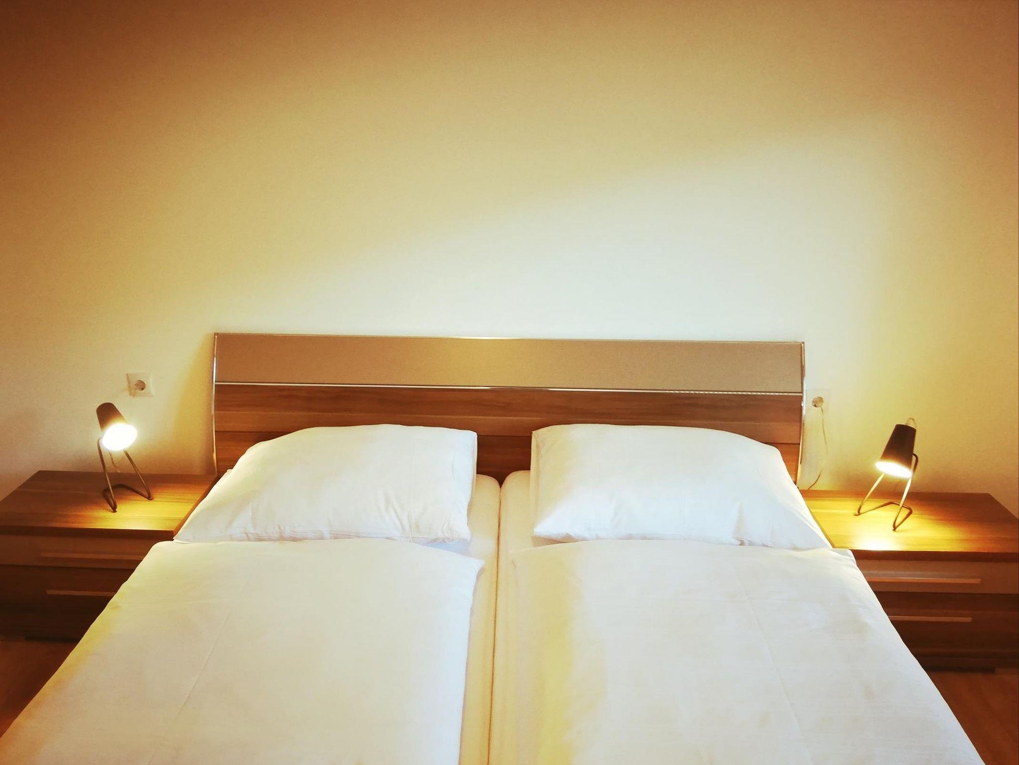 Zwei Schlafzimmer, DU/WC getrennt, Küche Sitzecke und SAT/TV, Internetanschluss, freies Wlan, Balkon zur Ost- und Südseite, Geschirr, Bettwäsche und Handtücher werden bereitgestellt.