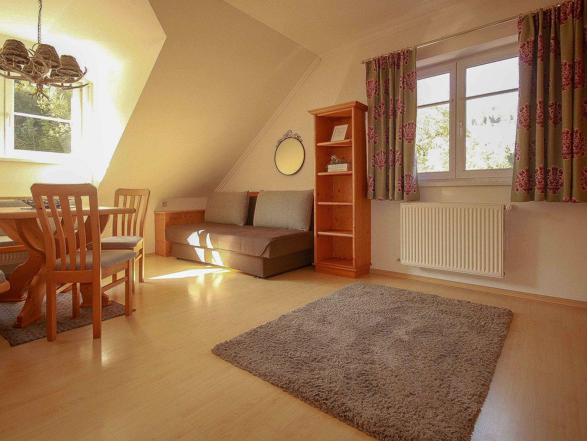 Sie erwarten ein Schlafzimmer, ein Wohnzimmer mit Essbereich und Schlafsofa, eine separate Küche und ein Badezimmer.