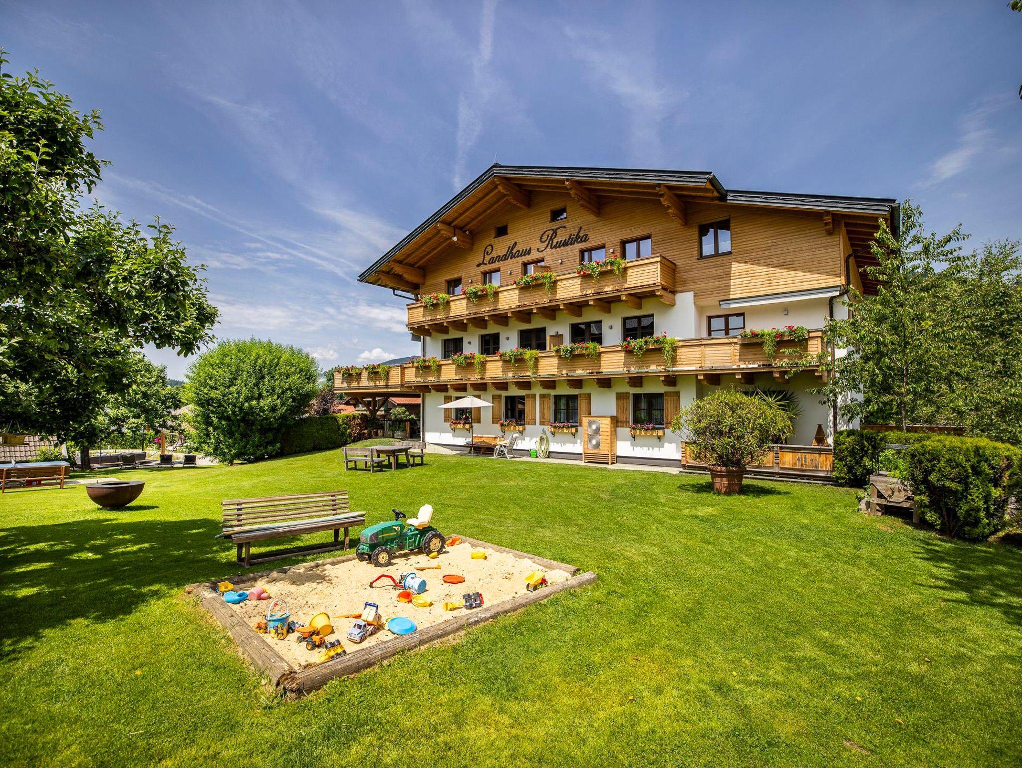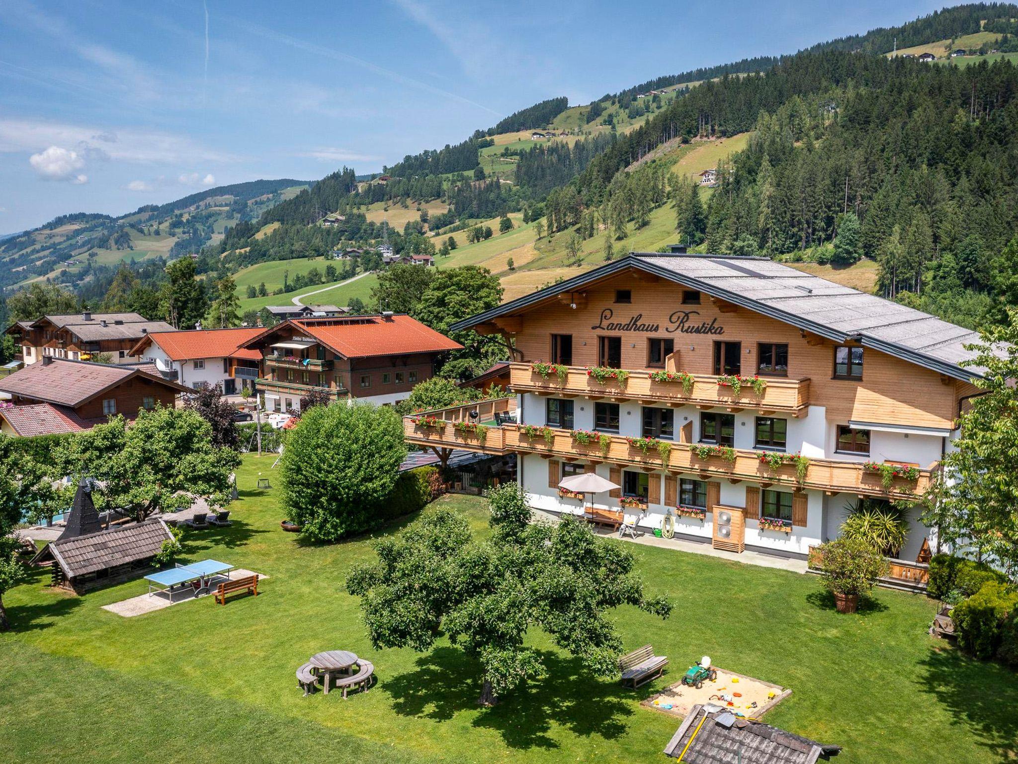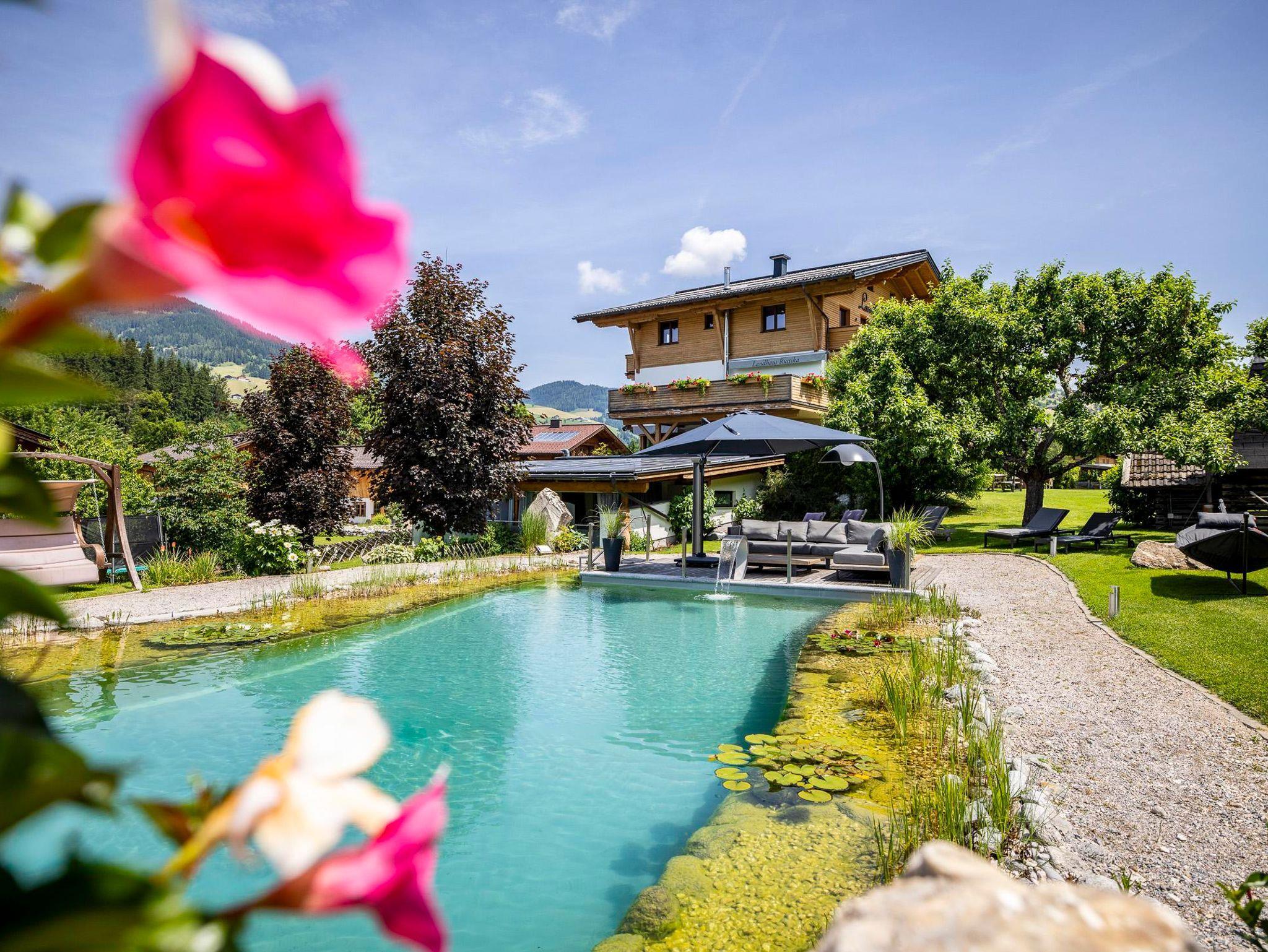 Das Landhaus Rustika befindet sich in ruhiger Lage am Sonnenplateau von Wagrain - Kirchboden. Die großzügige Gartenanlage mit Naturschwimmteich 10 x 11 Meter, Kneipppfad, Spielplatz, Tischtennis, Fischteich, Streichelzoo und Liegewiese lädt zum Entspannen und Erholen ein.