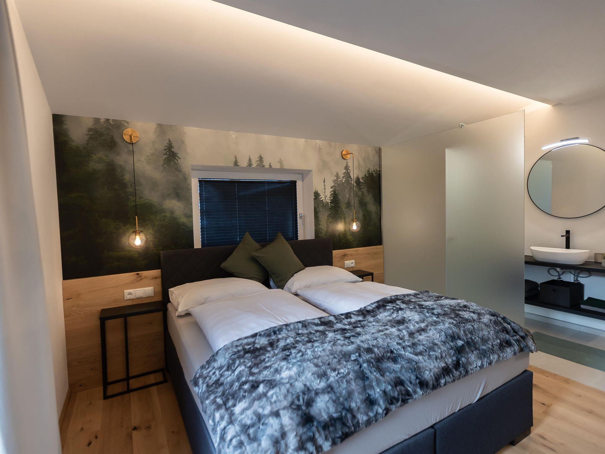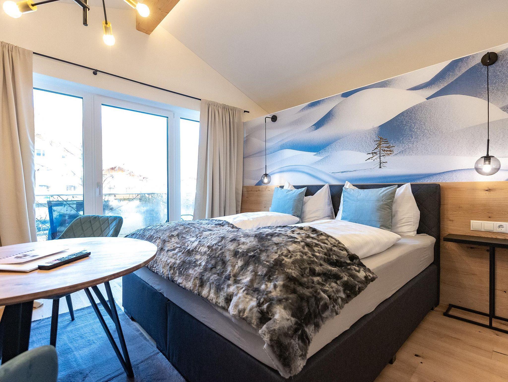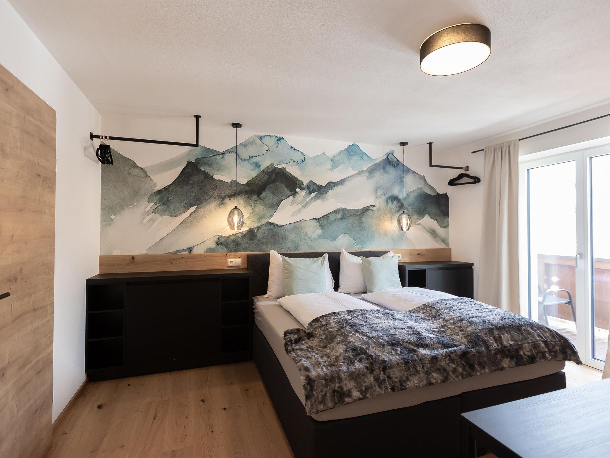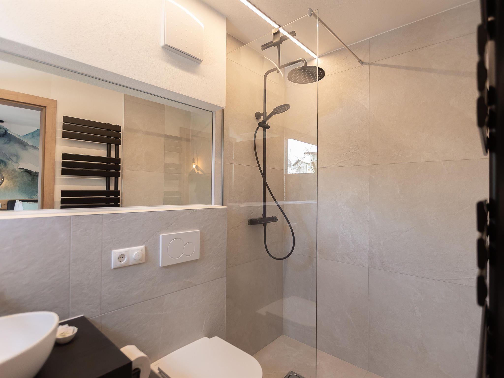 Unser Mountainy & Watery - Apartment mit Bergblick ist ideal für Familien und Freunde, verfügt über 2 getrennte Schlafzimmer mit komfortablen Boxspringbetten, 2 Bäder mit Regendusche, moderne Küchenzeile, Teeküche, großer Essbereich, 2 Balkon, WIFI.