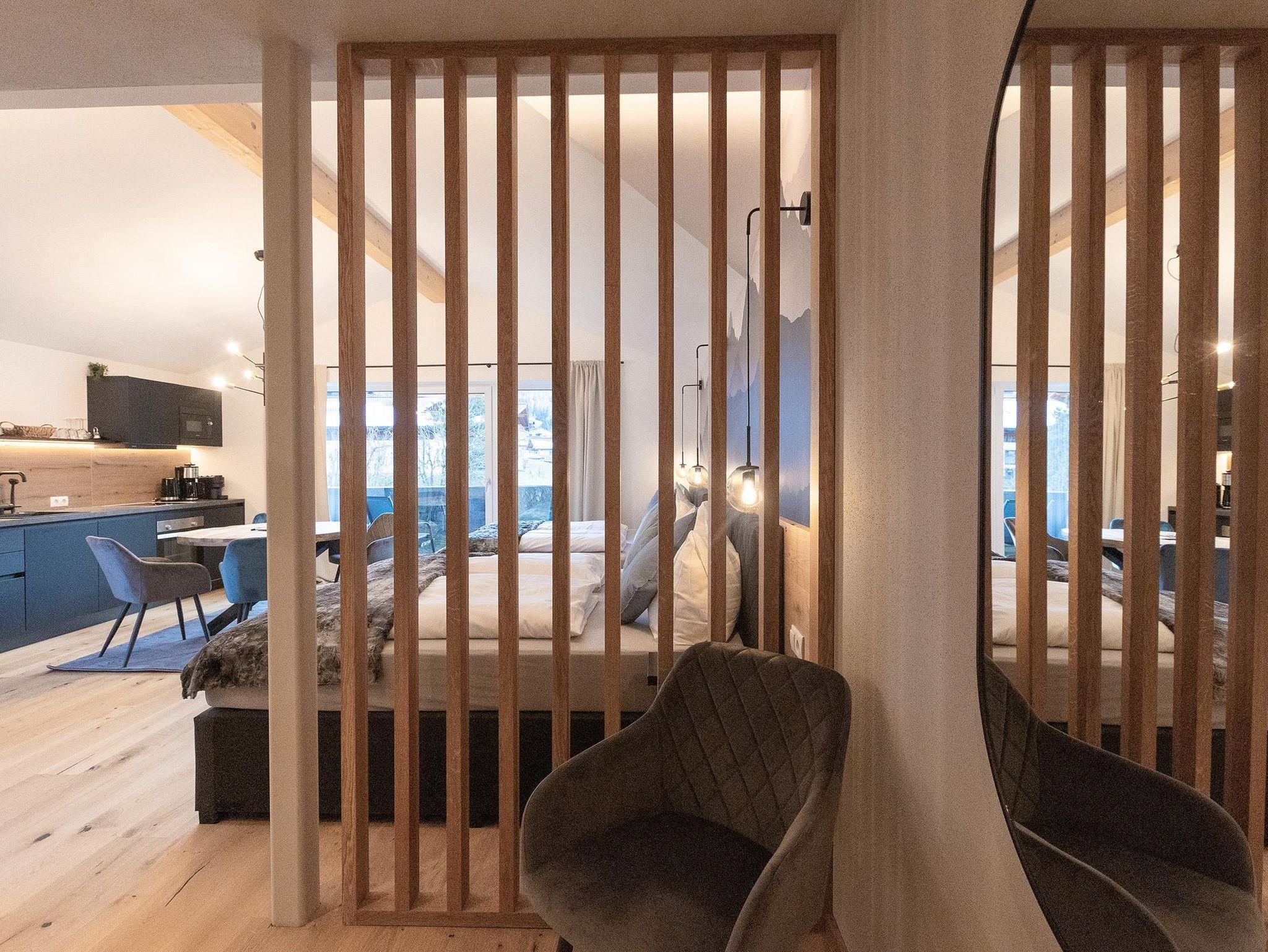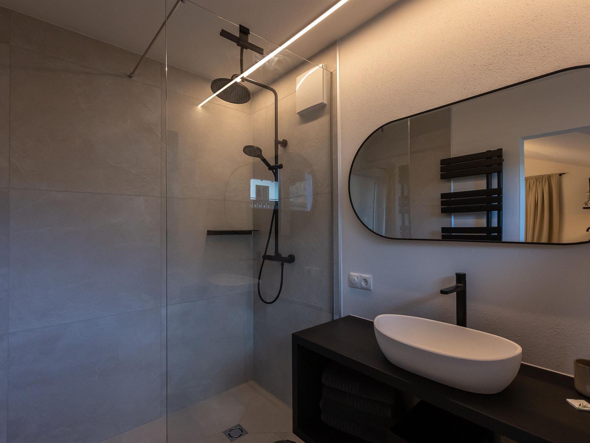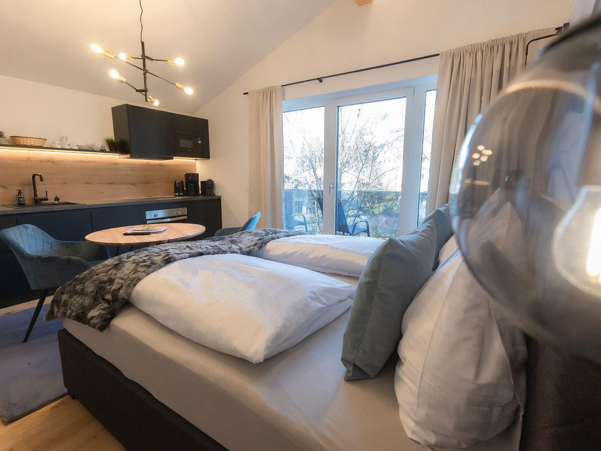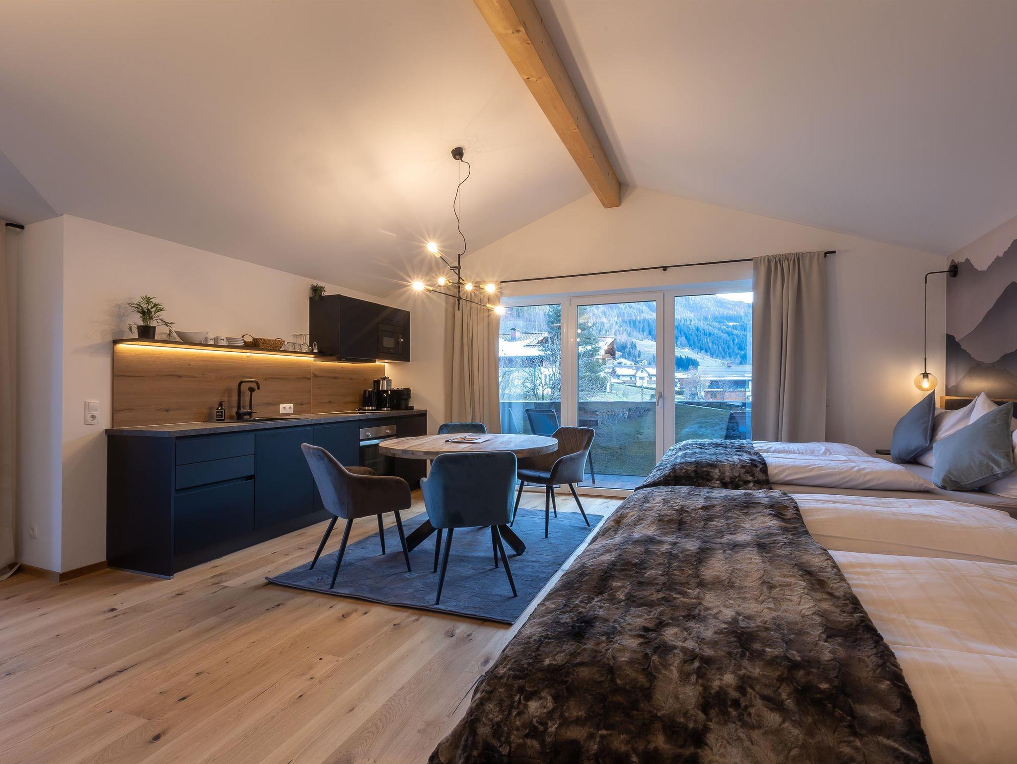 Unser Mountainy & Watery - Apartment mit Bergblick ist ideal für Familien und Freunde, verfügt über 2 getrennte Schlafzimmer mit komfortablen Boxspringbetten, 2 Bäder mit Regendusche, moderne Küchenzeile, Teeküche, großer Essbereich, 2 Balkon, WIFI.
