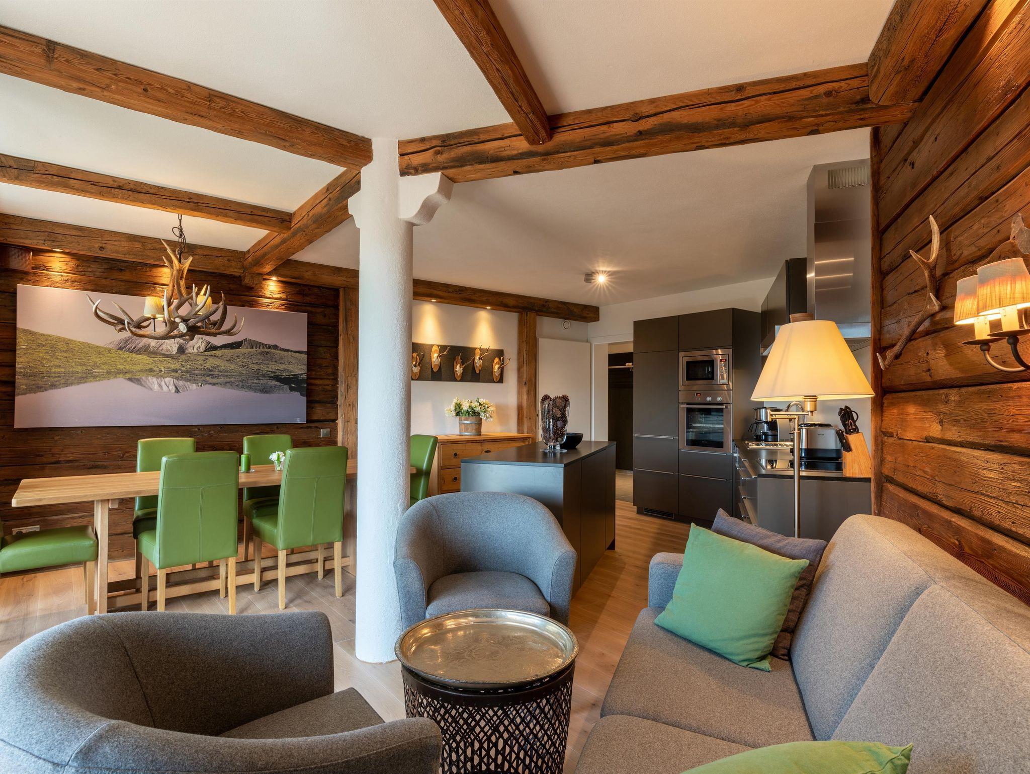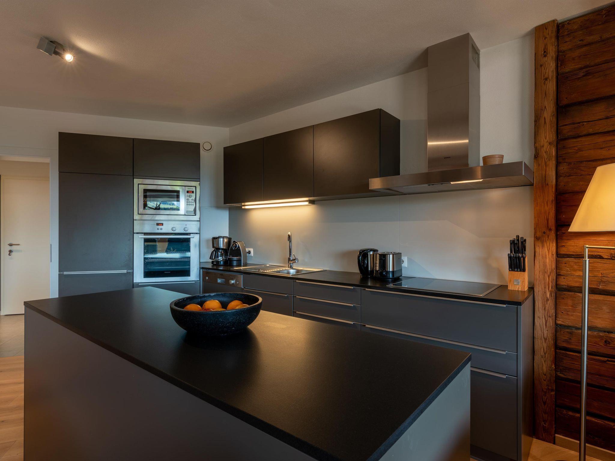 Dich erwartet ein Apartment mit 2 Schlafzimmern, Wohnküche inklusive großem Esstisch, Badezimmer und einer privaten Sauna.