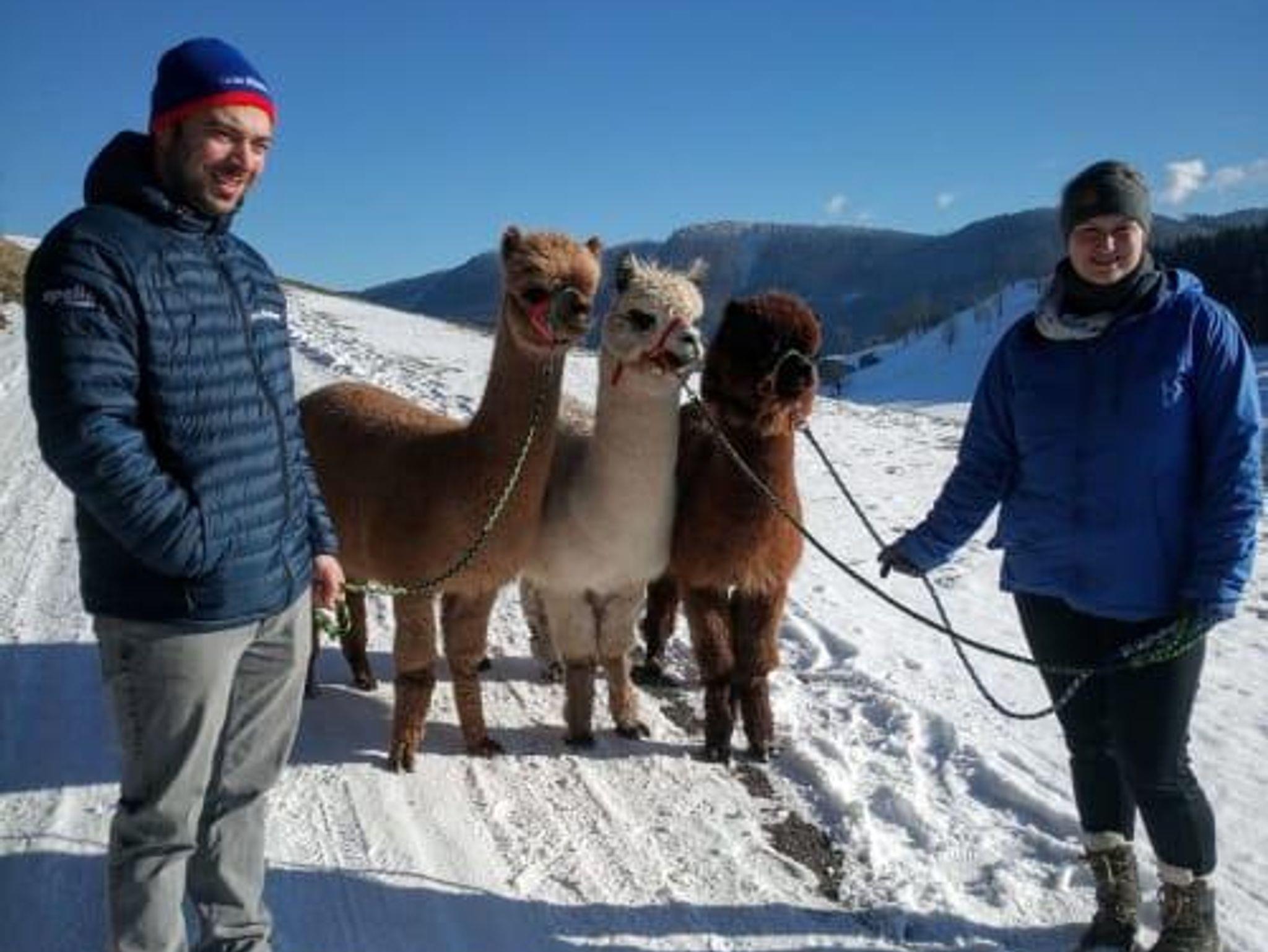 Sanftmütige Alpakas leben auf dem Hof und können bei geführten Wanderungen begleitet werden. Zudem sind hochwertige Alpakaprodukte wie Decken, Schuheinlagen und Wolle erhältlich.