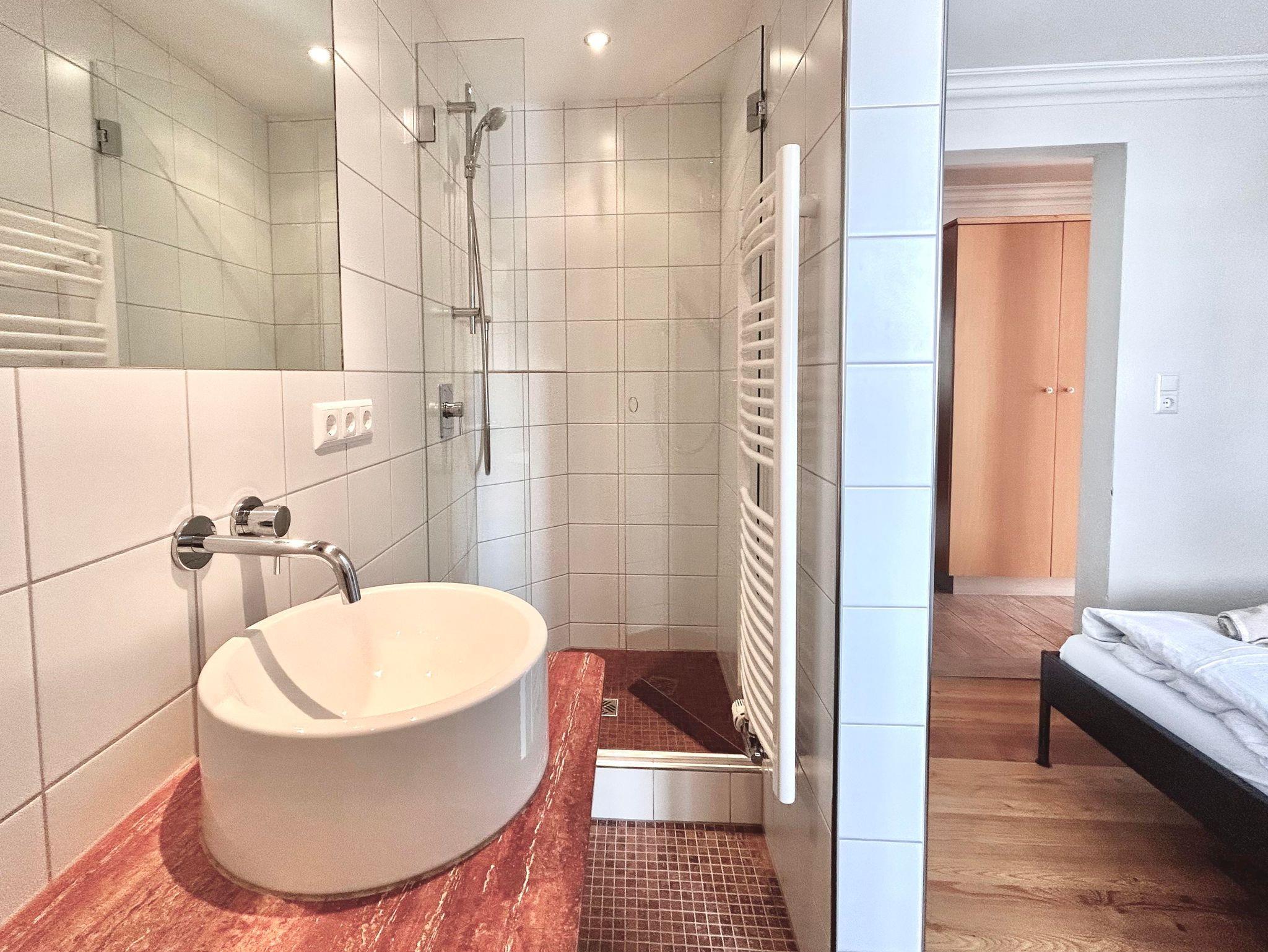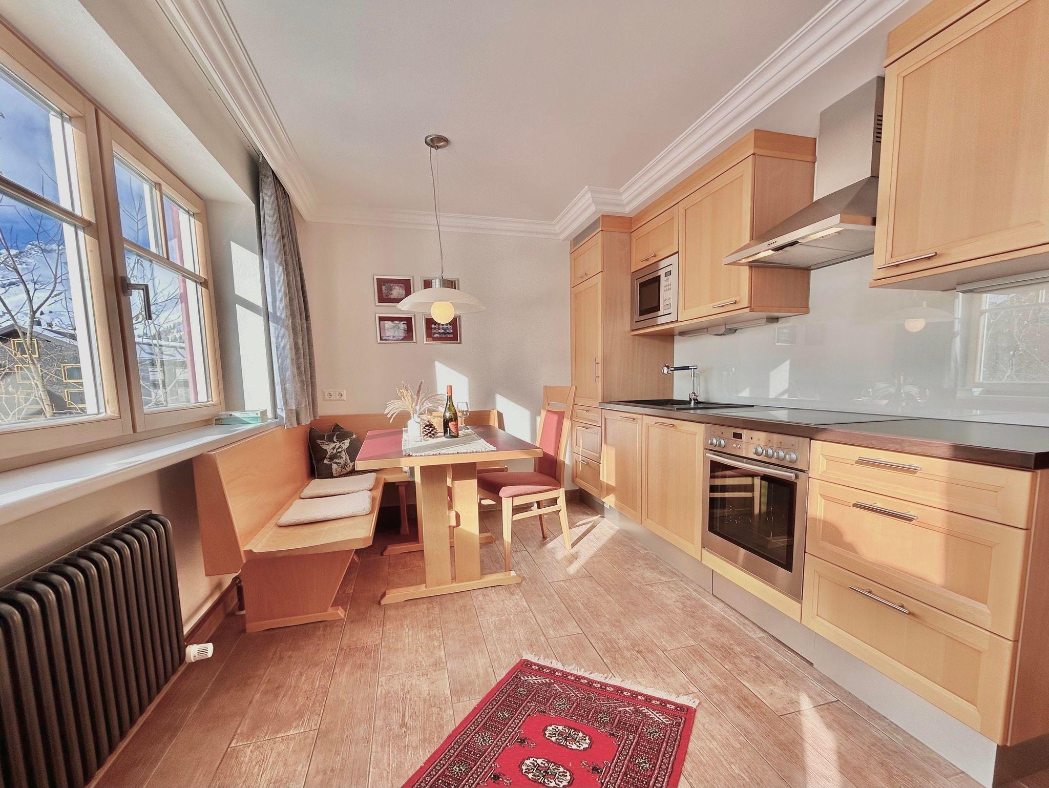 ZWERGENSTUBE hat ca. 32 m² - Doppelschlafzimmer - Dusche-WC - Wohnküche (Sitzecke-Kühlschrank mit Gefrierfach-Herd mit Backofen-Kaffeemaschine-Mikrowelle-Geschirrspüler) - Sat-TV - kostenloses WLAN und Balkon nach Westen.